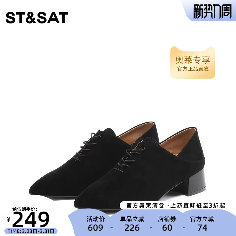 星期六气质尖头纯色皮鞋秋季新款系带休闲好搭女鞋SS33112154