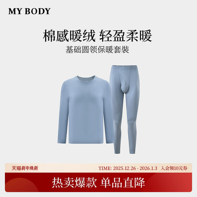 商场同款MYBODY冬季新款男士保暖内衣秋衣秋裤基础圆领保暖套裝男
