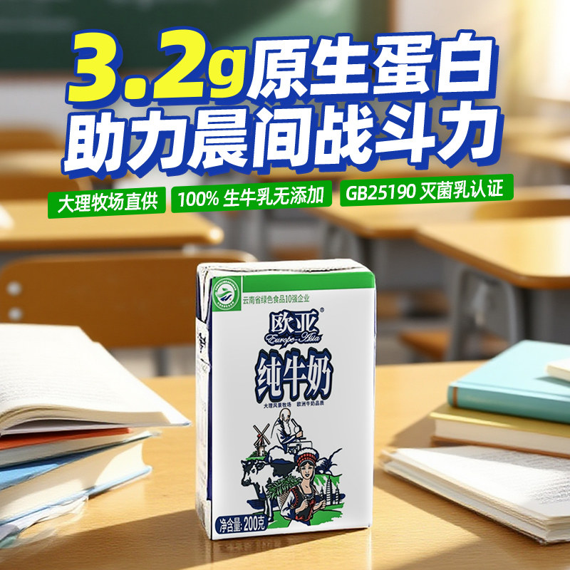 欧亚高原全脂纯牛奶200gx20盒整箱营养早餐乳制品生牛乳学生成人