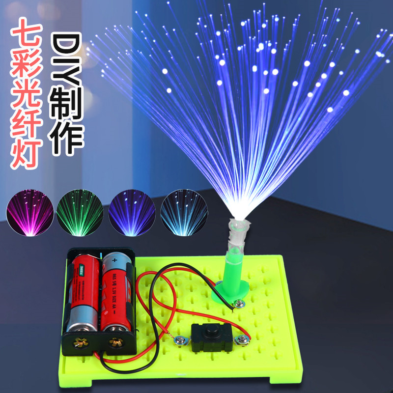 儿童科技手工小制作DIY自制七彩变色光纤灯科学实验益智玩教具