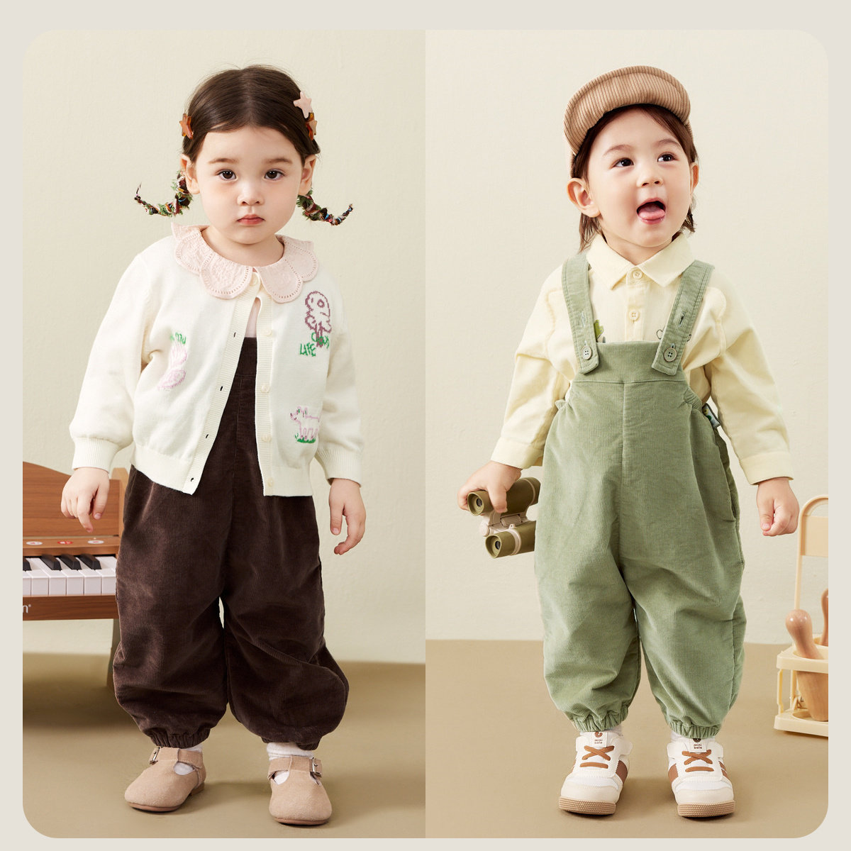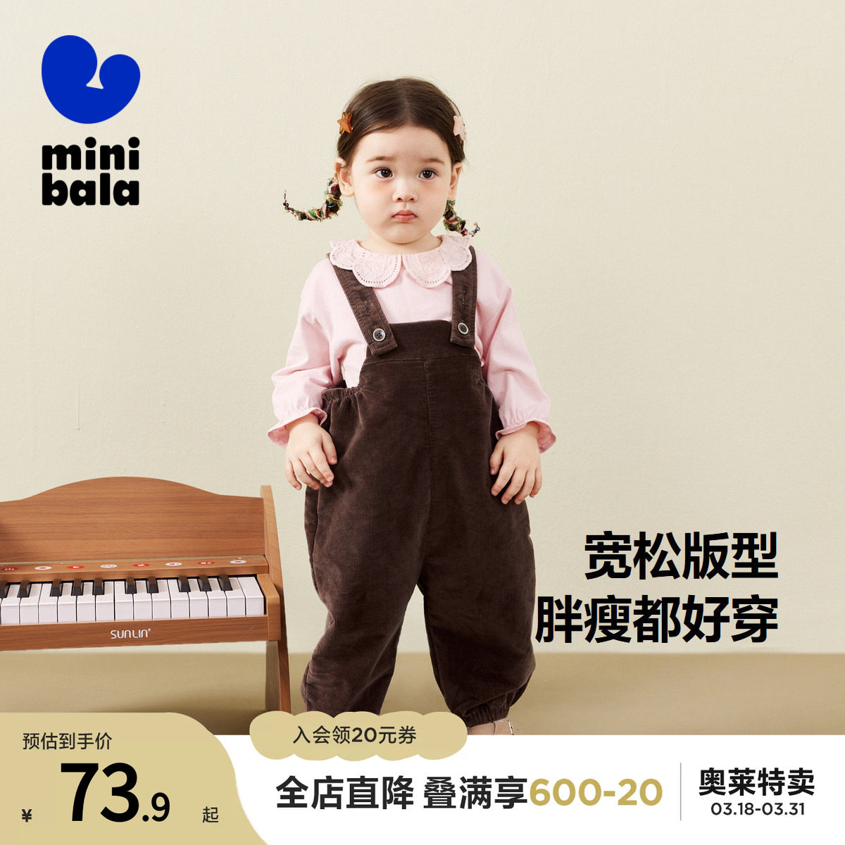 【柔软灯芯绒宝宝背带裤长裤】迷你巴拉巴拉男女童温暖宽松裤子秋