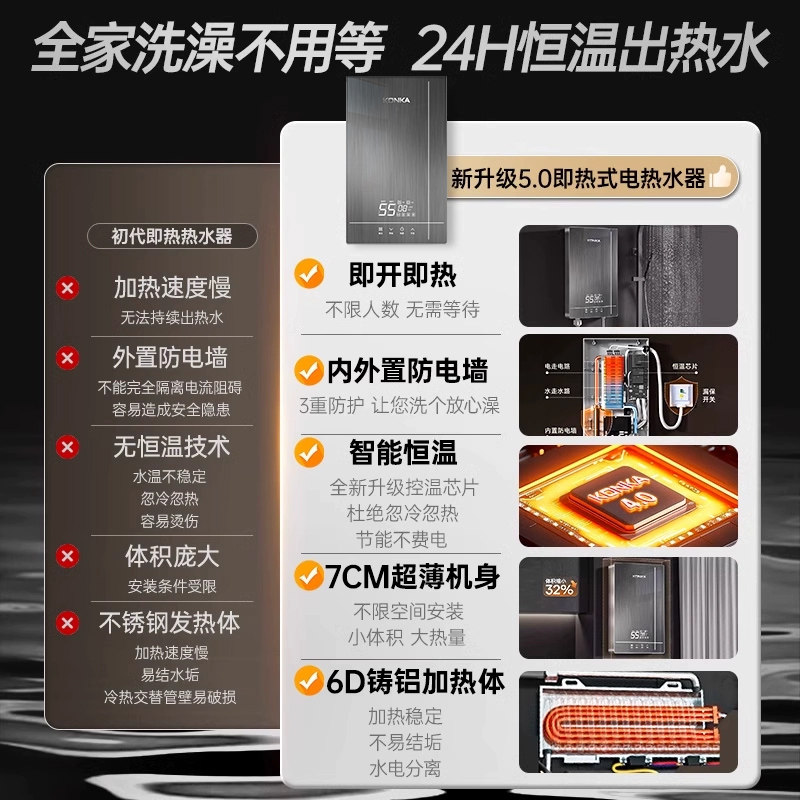 康佳即热式电热水器新款家用恒温变频卫生间洗澡速热理发店补贴01