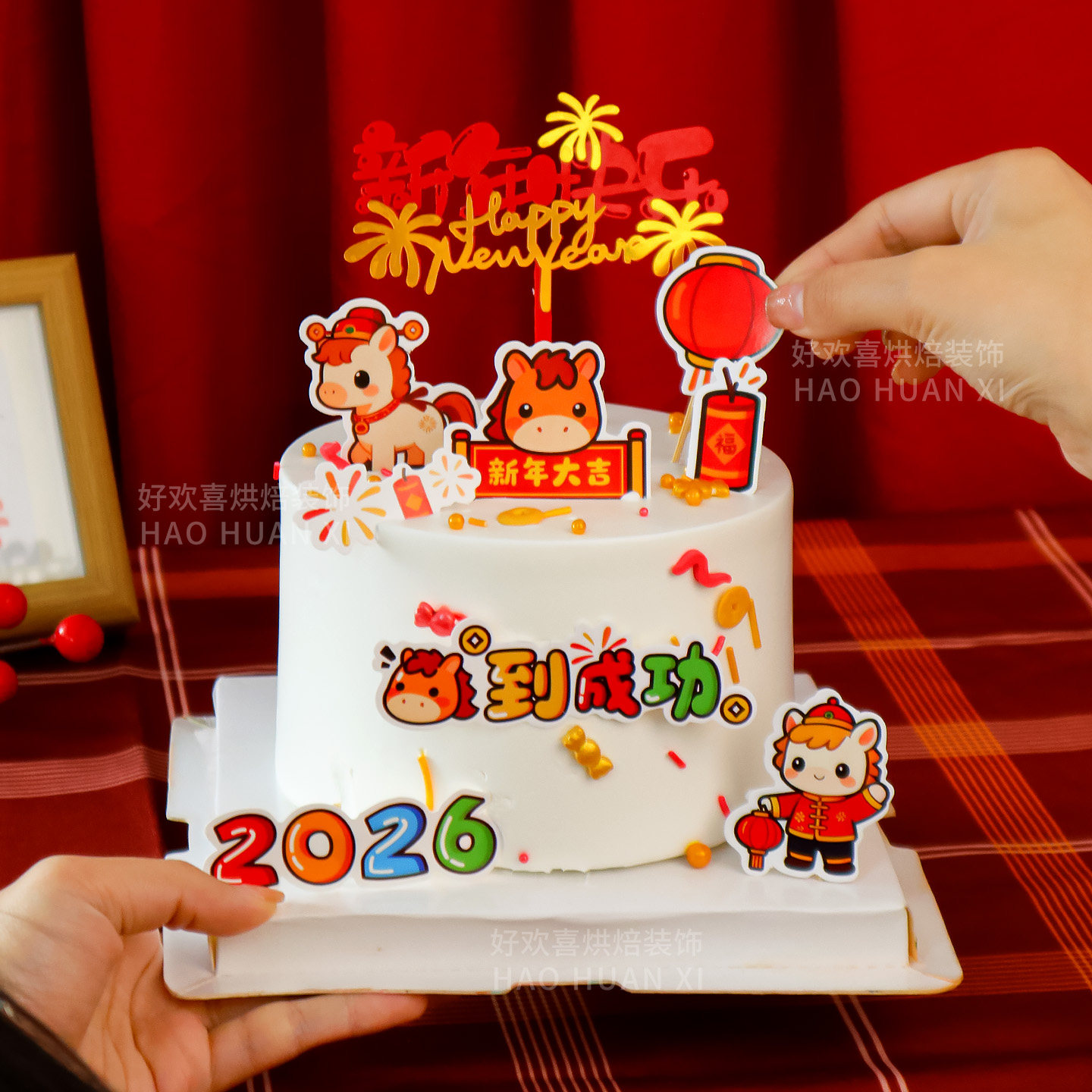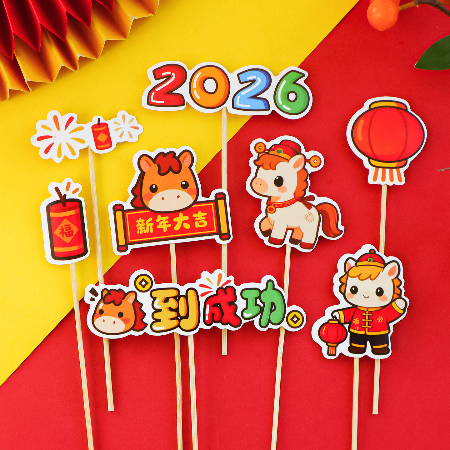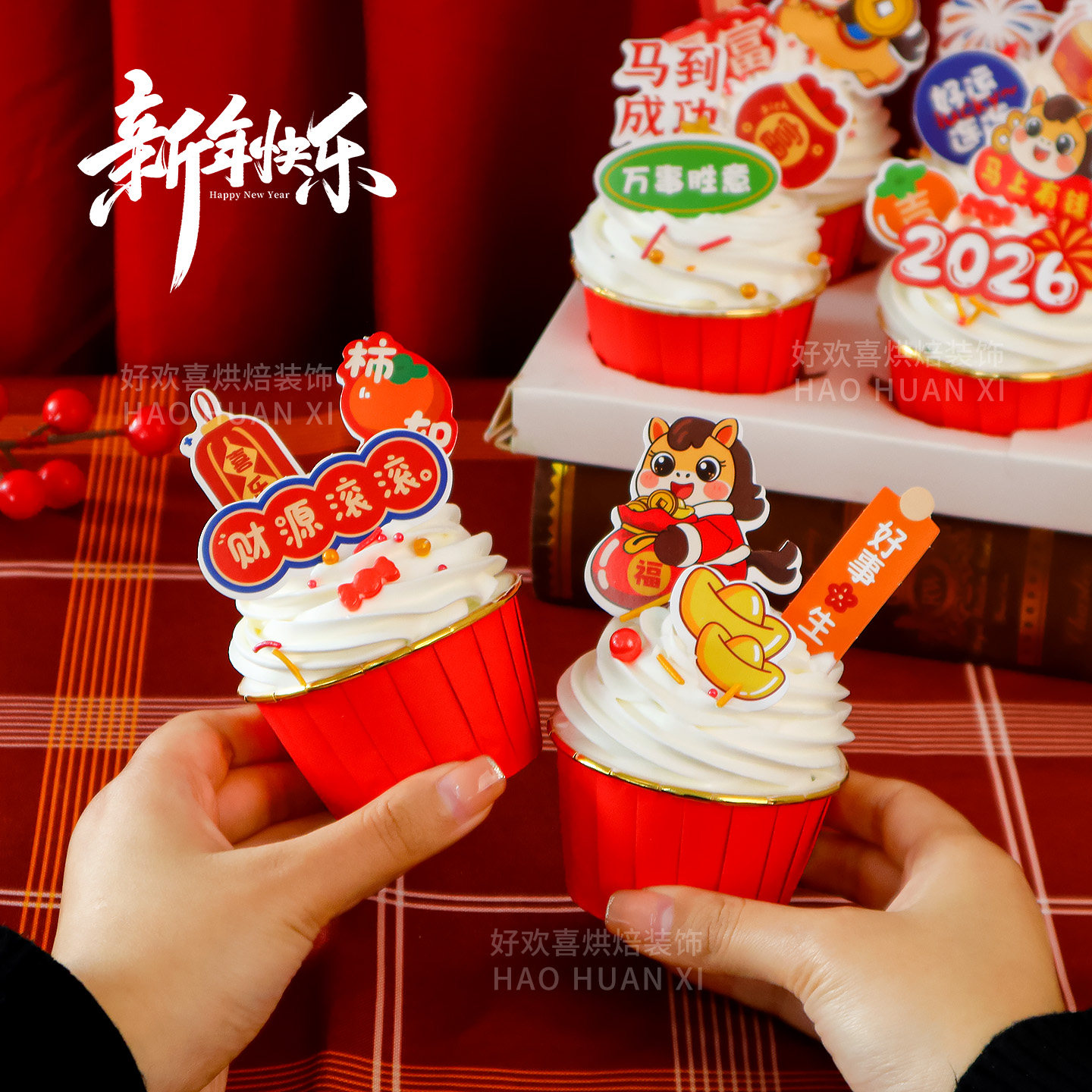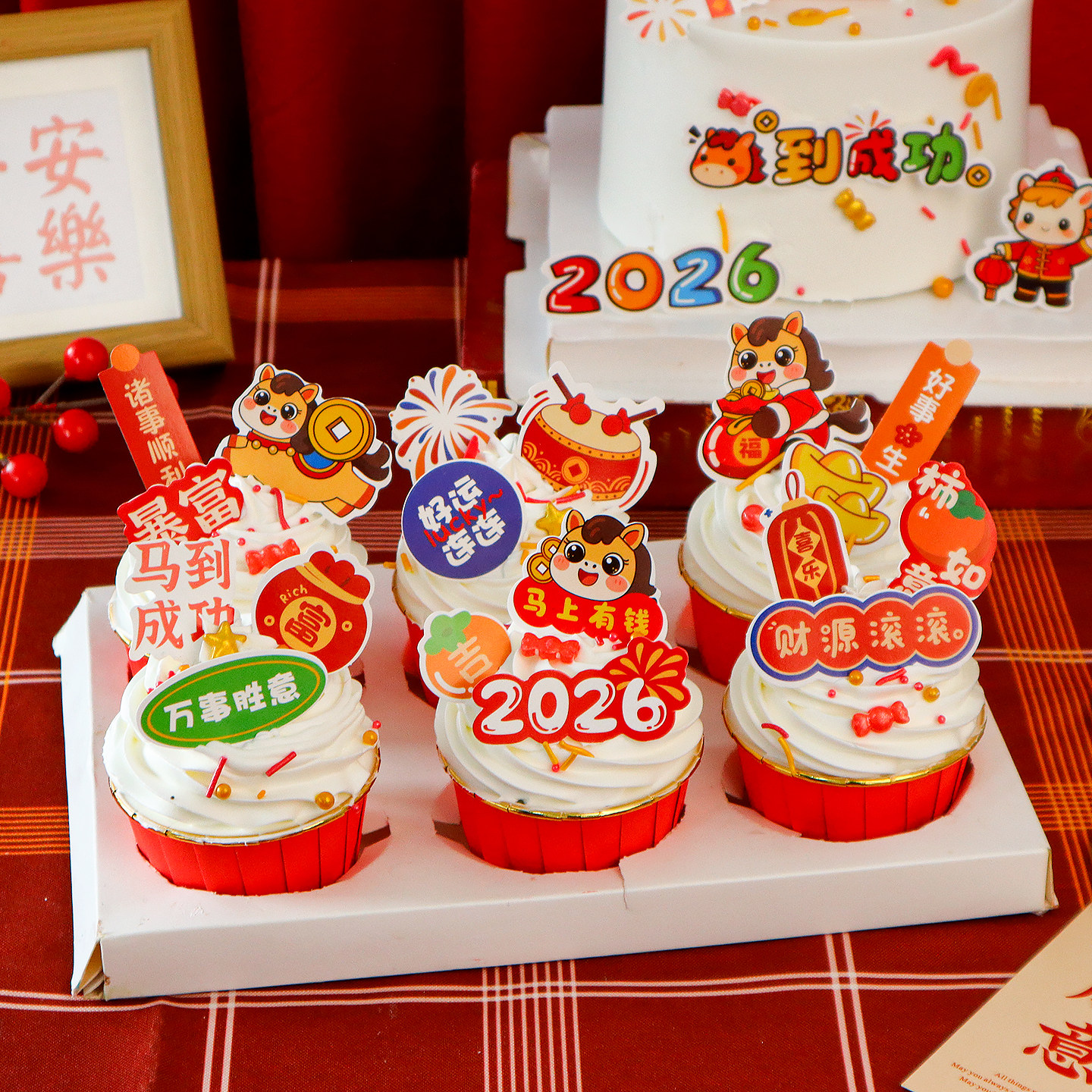 2026跨年蛋糕装饰插件新年马到成功插卡马年元旦纸杯烘焙甜品插牌