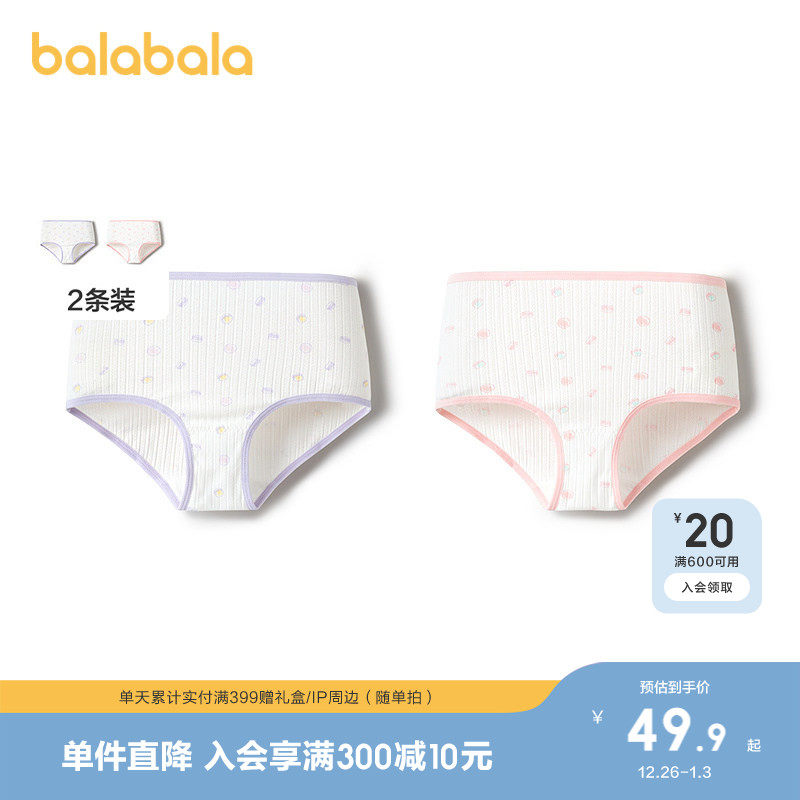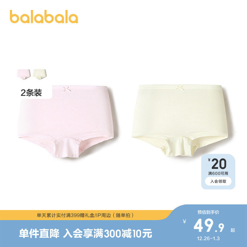 巴拉巴拉女童内裤平角儿童四角短裤舒适抗菌裆两条装