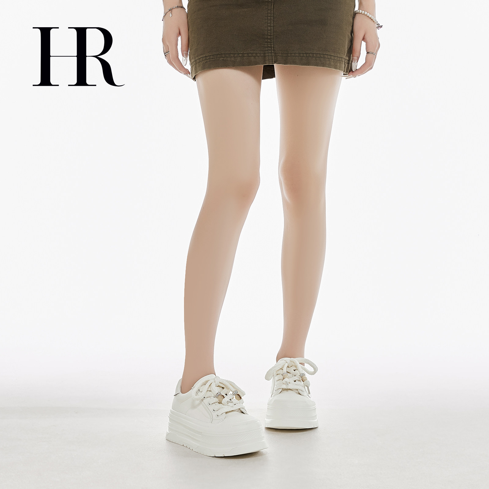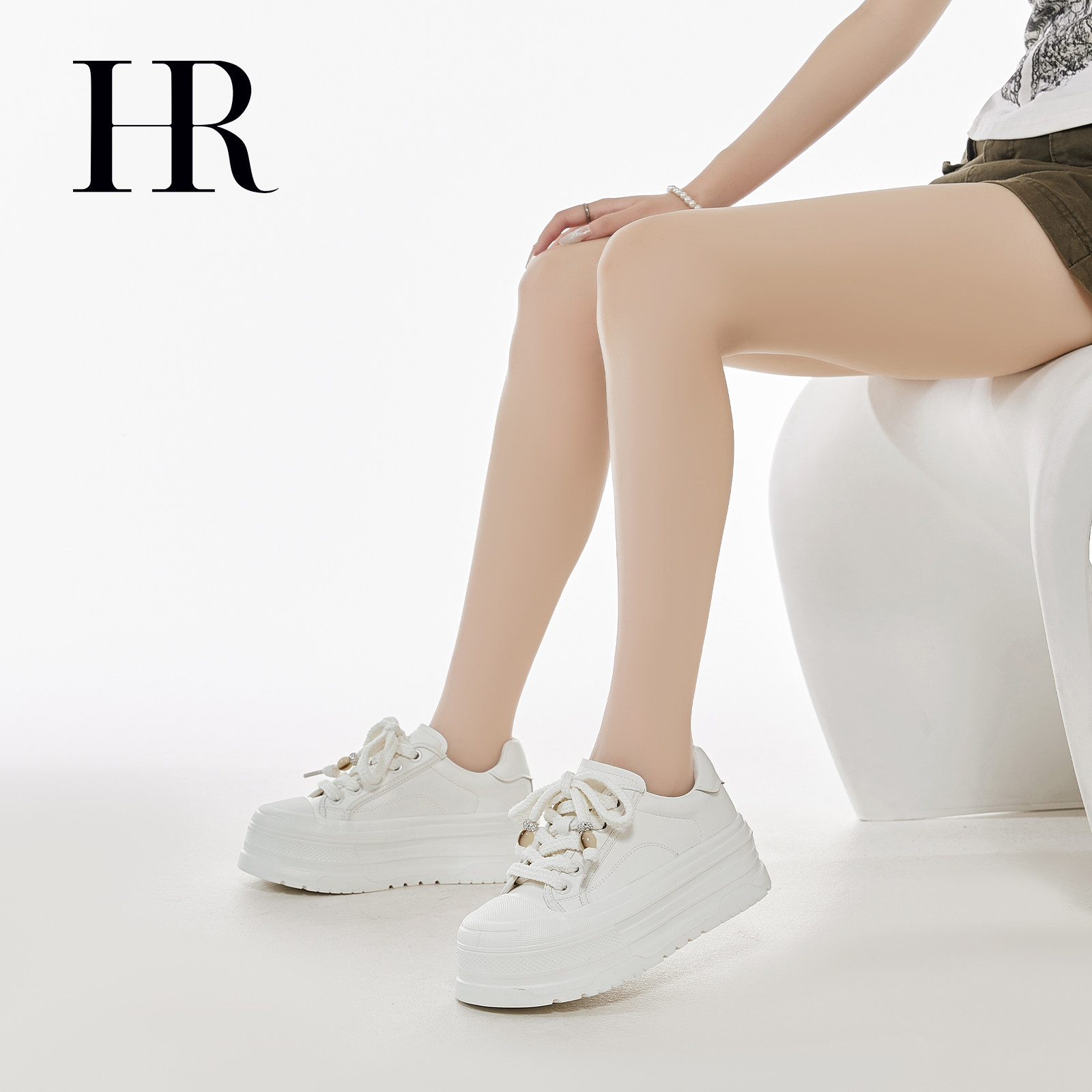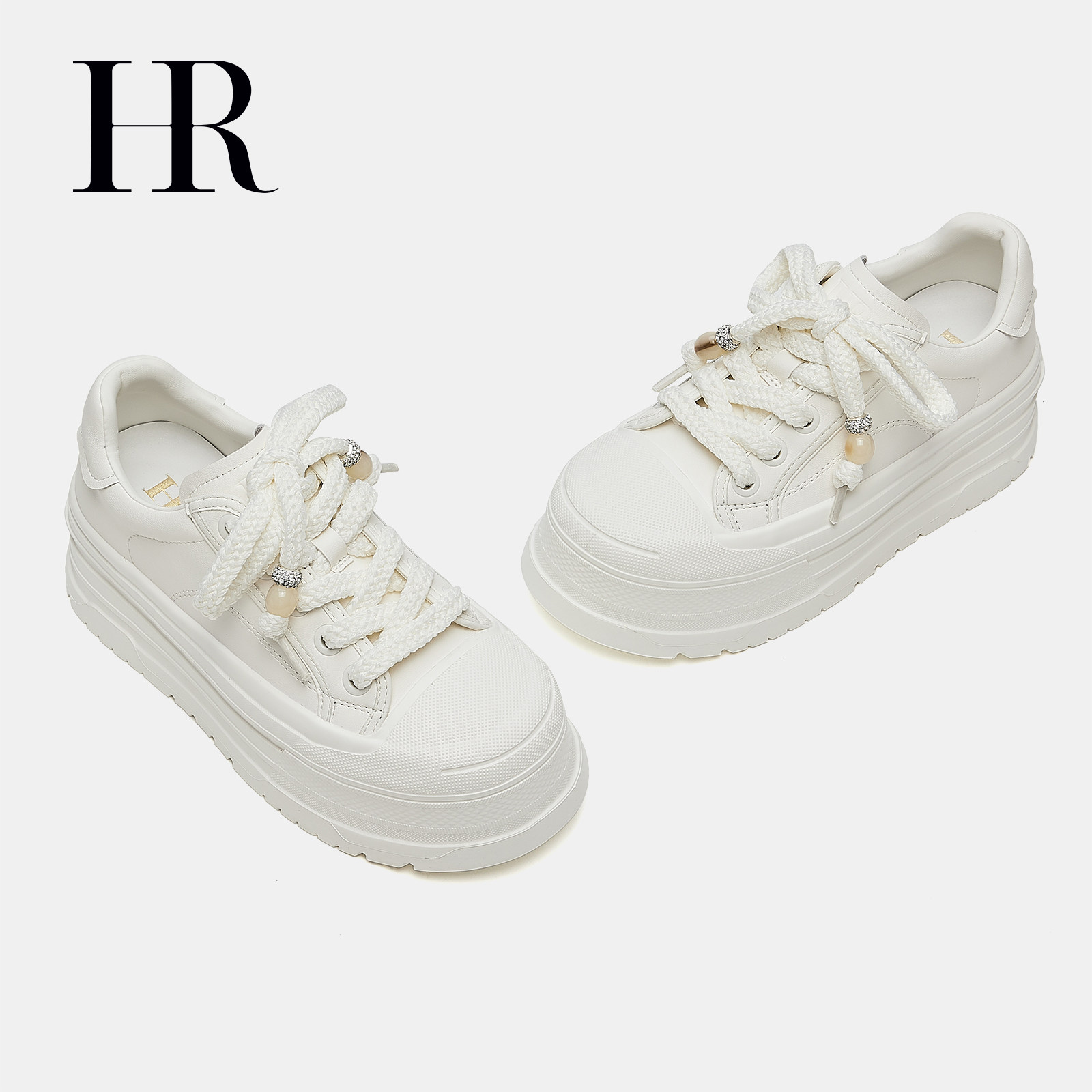 HR赫莲娜板鞋2025夏季新款休闲女鞋子厚底串珠挂饰小白鞋增高百搭
