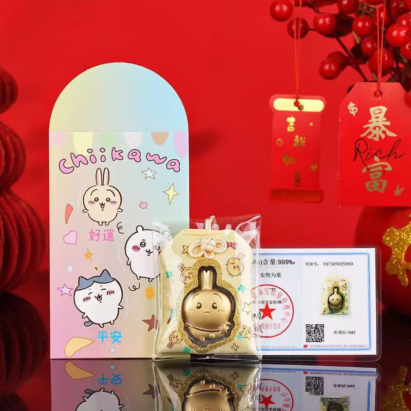 足金999水贝Chiikawa足金小八御守汽车挂件可爱卡通开运护身符