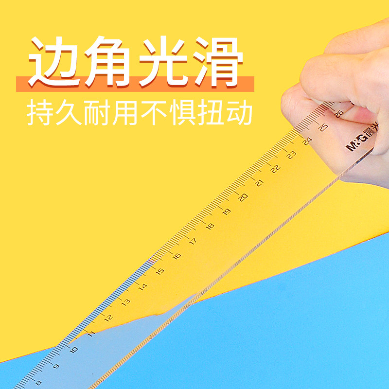 晨光新款直尺有机玻璃亚克力透明塑料文具尺子加厚尺20cm 30厘米长尺子中小学生专用美术绘画测量直尺办公用