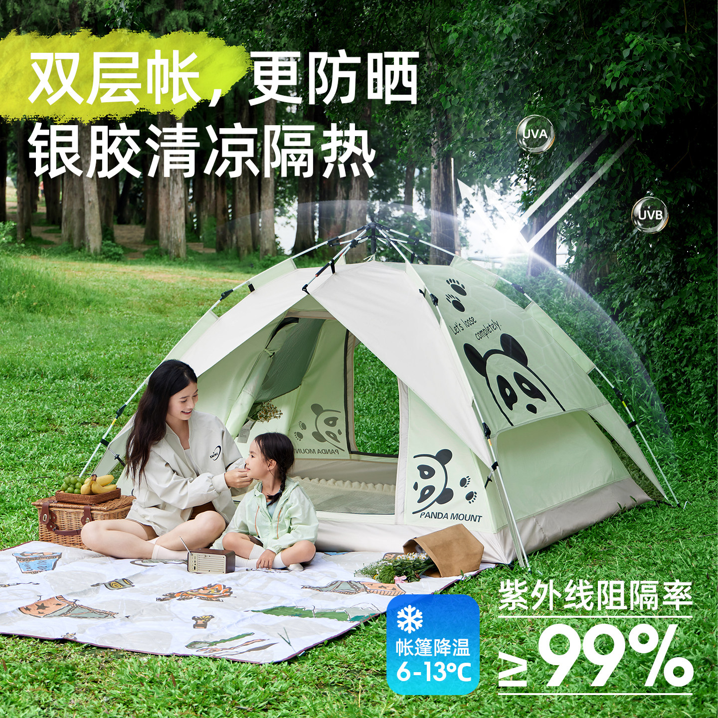 骆驼熊猫联名帐篷户外露营野营过夜便携式折叠全自动全套装备加厚