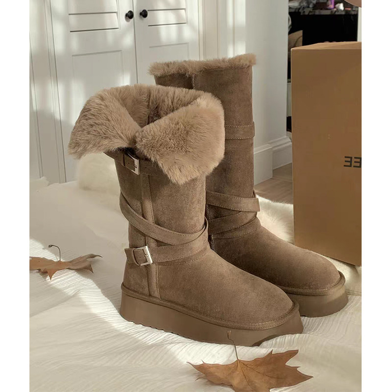 Chio2nd南风 雪地靴棉鞋2024新款冬季女士厚底加绒皮毛一体鞋子