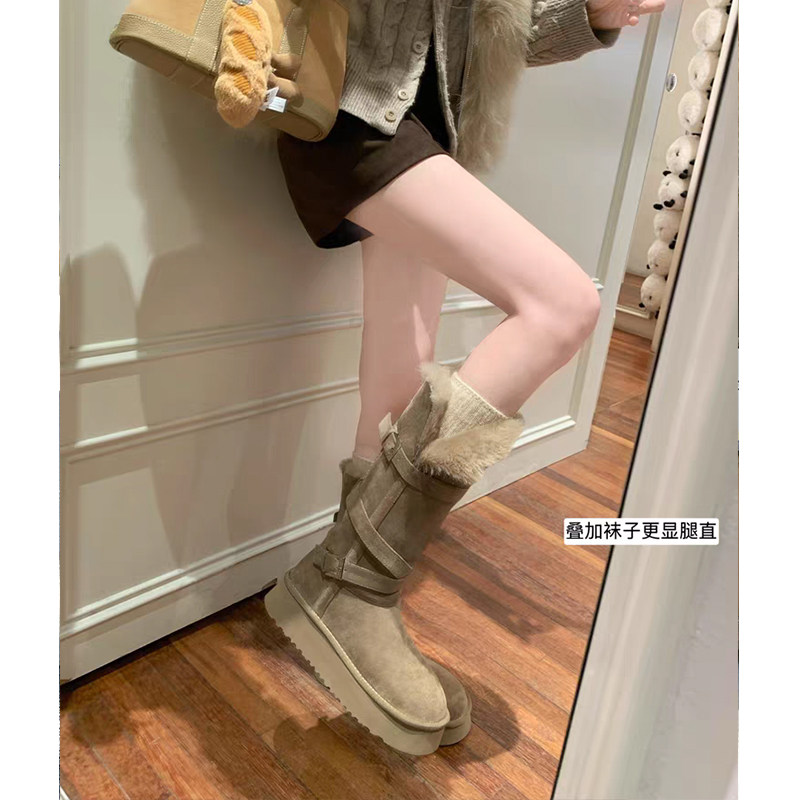 油叽叽~真皮羊毛雪地靴女冬季加绒加厚保暖棉靴厚底增高短筒靴子