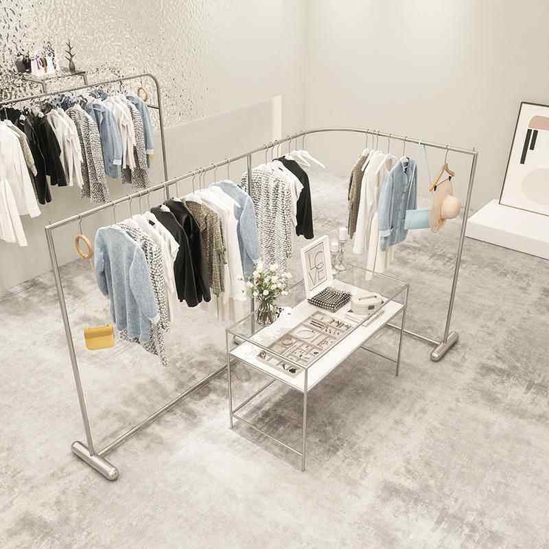 服装店展示架不锈钢拐角中岛架女装货架童装陈列展示台落地挂衣架