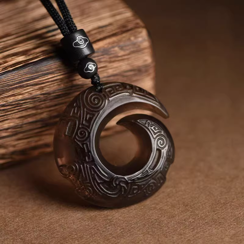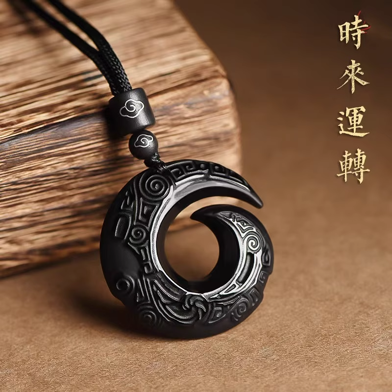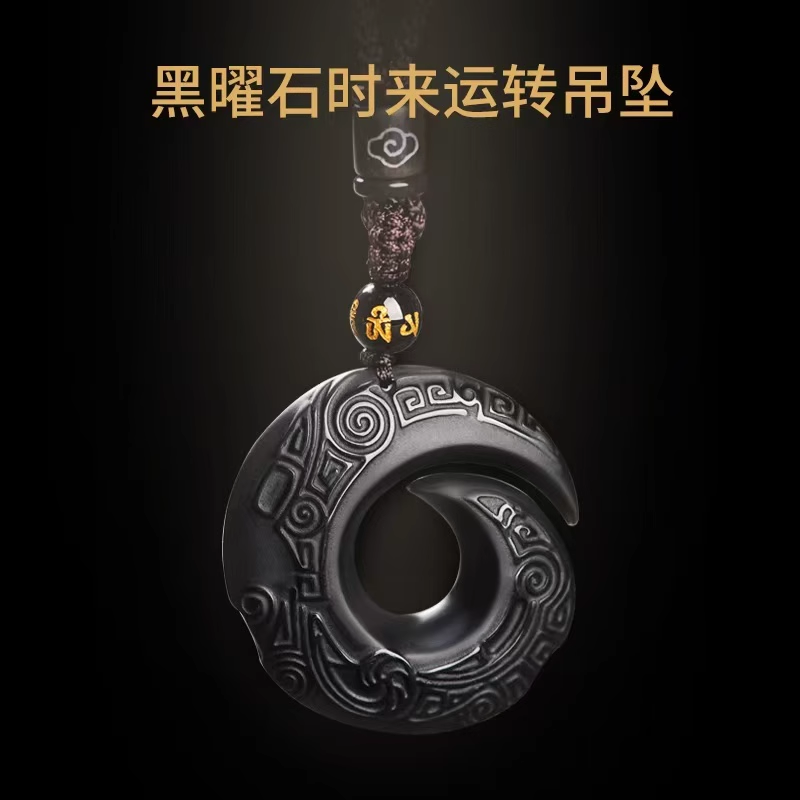 天然黑曜石时来运转吊坠平安扣护身符冰种男士女项链水晶挂坠补水