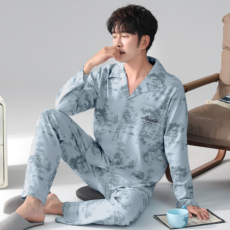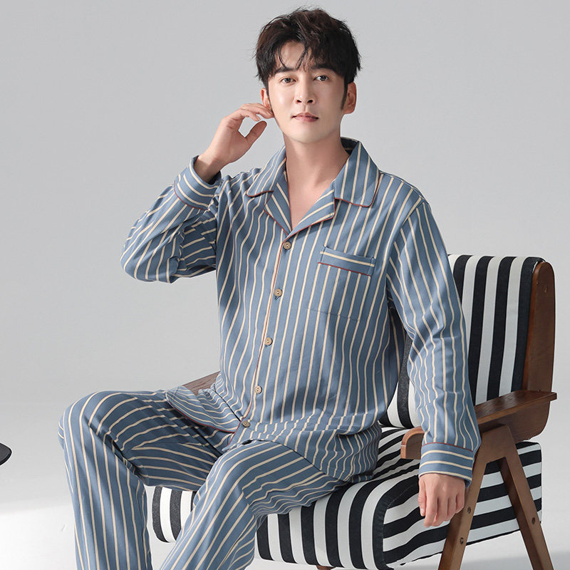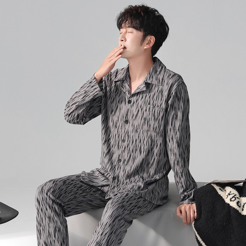 新款秋冬睡衣男长袖翻领可外穿休闲大码青年学生薄款高级感家居服