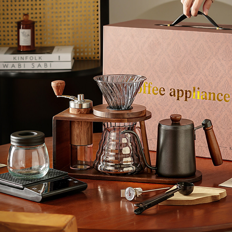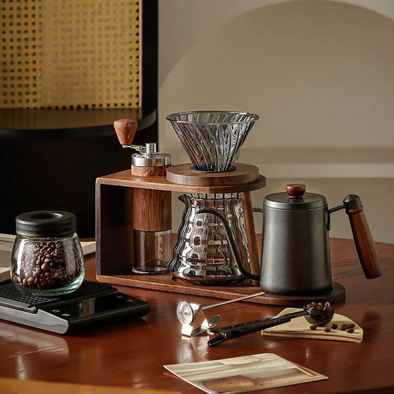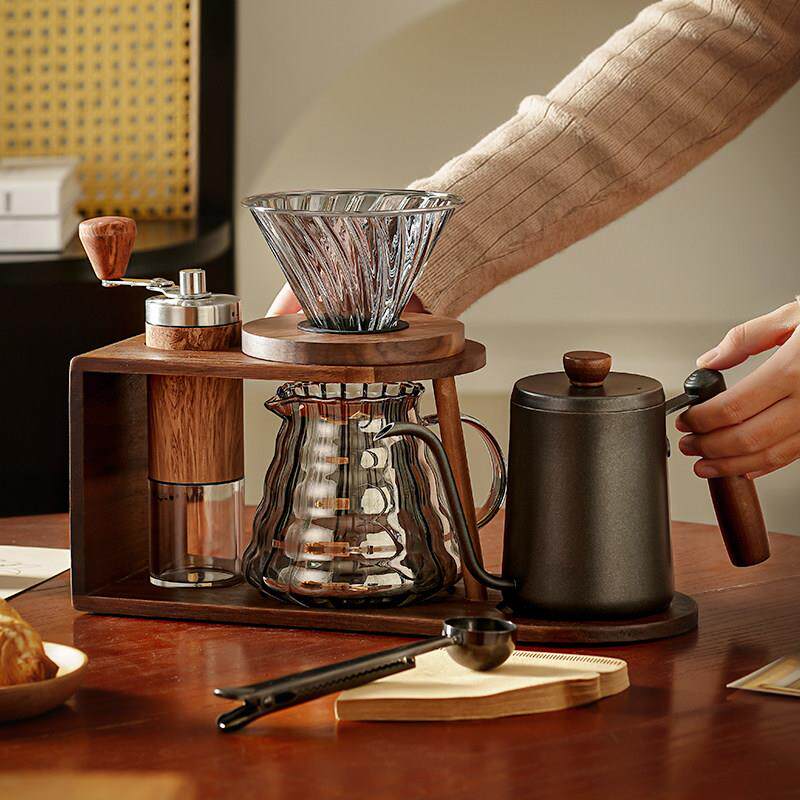 鹏音伴高端手冲咖啡壶套装可携式家用高级手摇机滤杯研磨器具礼盒收纳支架盖布