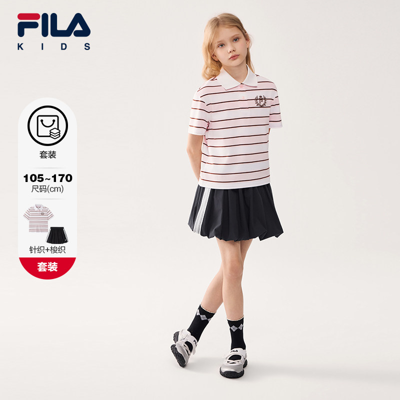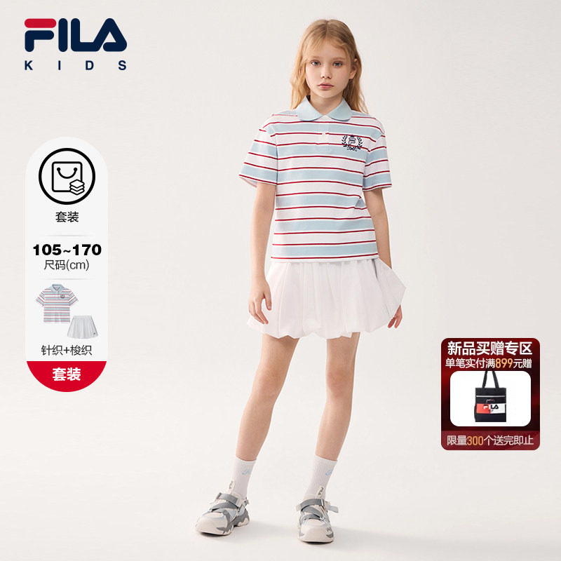 【套装】FILA斐乐儿童T恤短裙2026夏季新款女童中大童休闲两件套