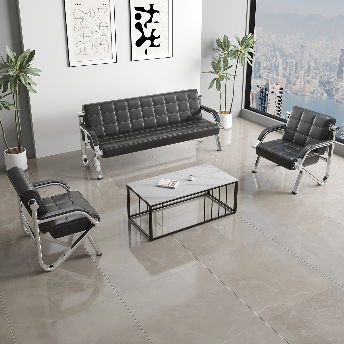 接待室办公沙发茶几组合简约现代商务会客简易办公室沙发三人位