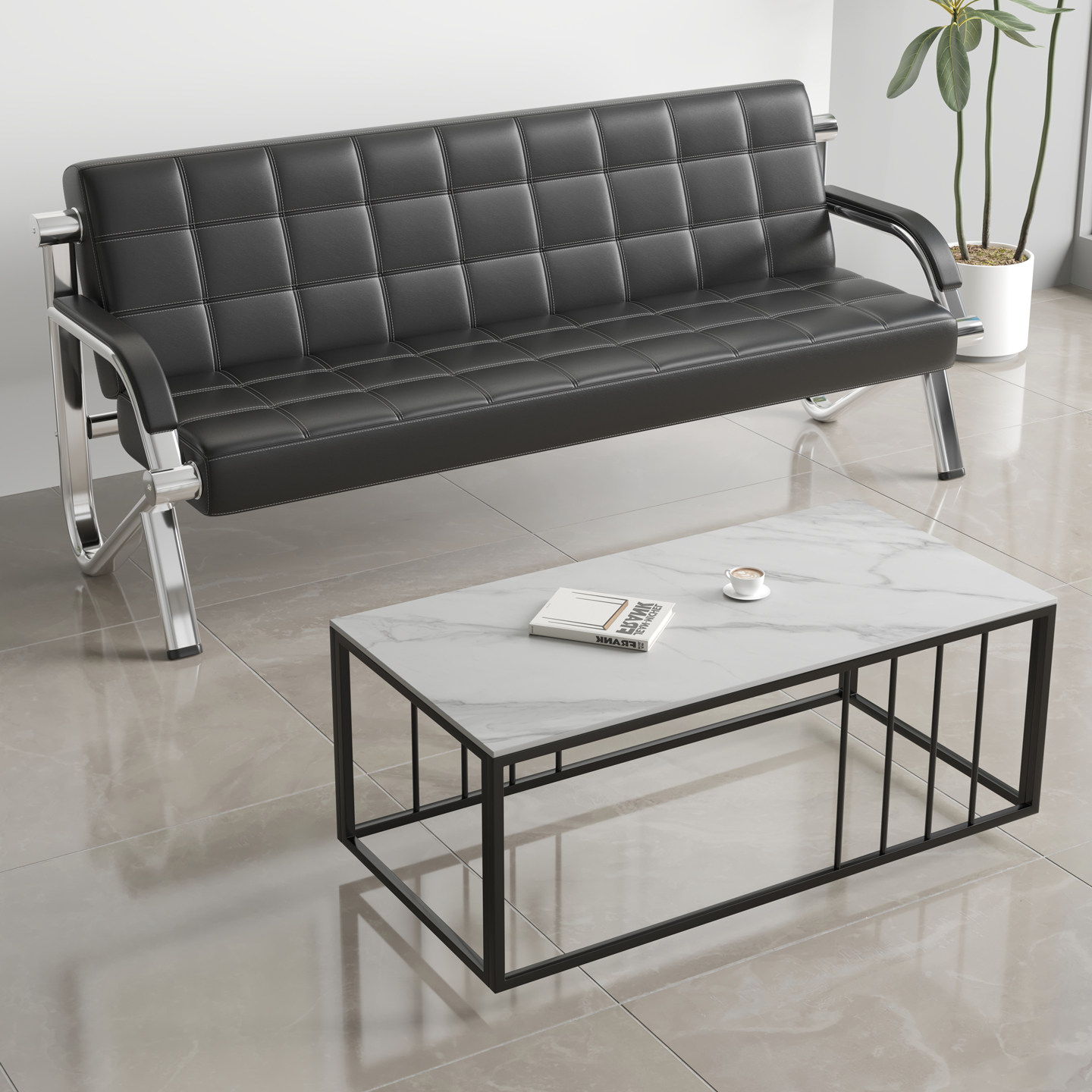 银行医院大厅等候卡座沙发培训班家长休息区长条凳铁艺美发店接待