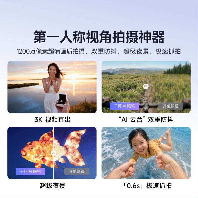 千问AI眼镜g1智能眼镜AI眼镜夸克S1千问助手运动相机高清拍摄导航翻译题词阿里眼镜大模型
