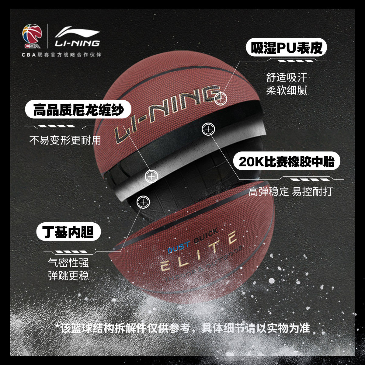 李宁CBA B8000精英防尘比赛篮球官方正品7号球篮球2026新款篮球