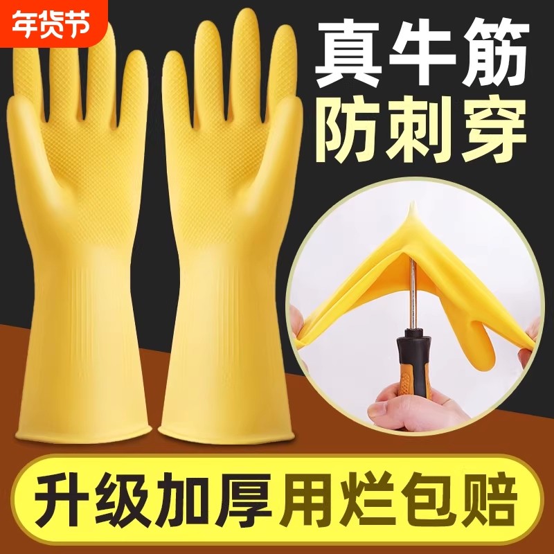 加厚牛筋乳胶手套劳保耐磨防水洗衣家务洗碗厨房工作保洁干活耐用