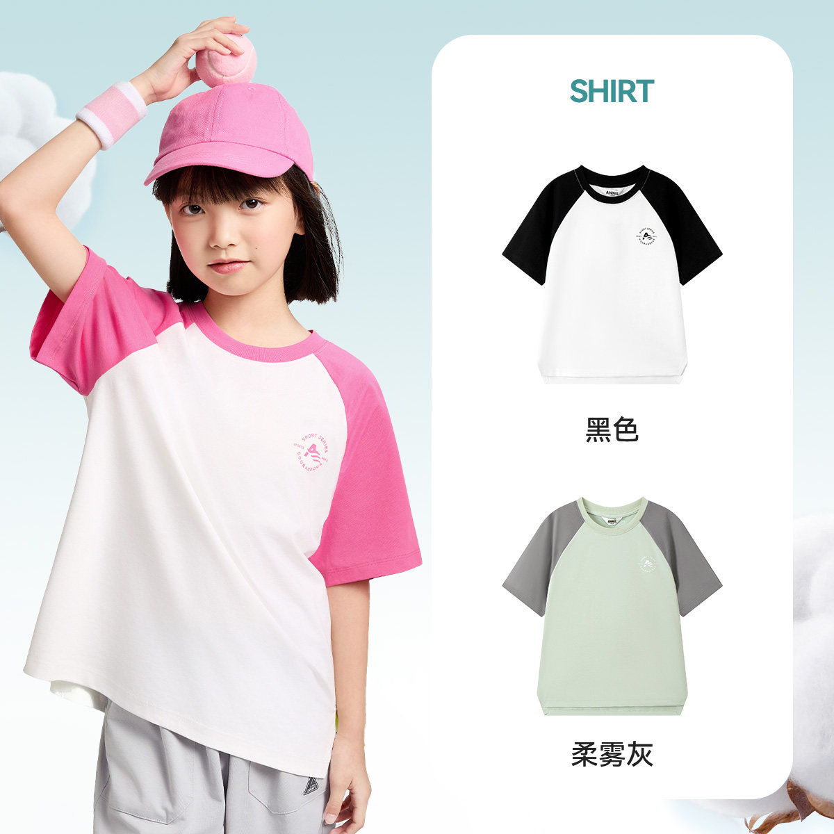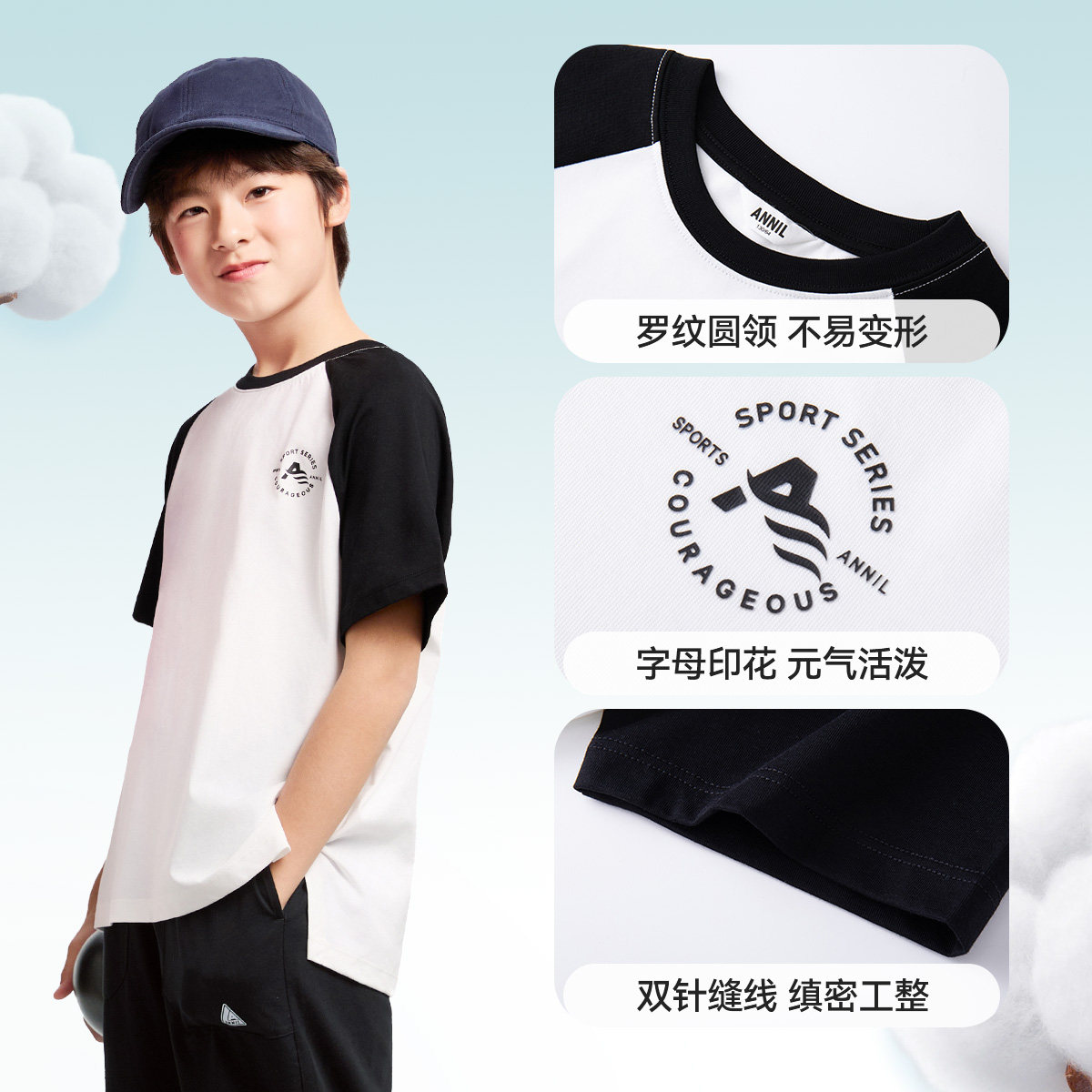 安奈儿童装男童女童圆领短袖T恤2025夏新款拼色凉感弹力透气