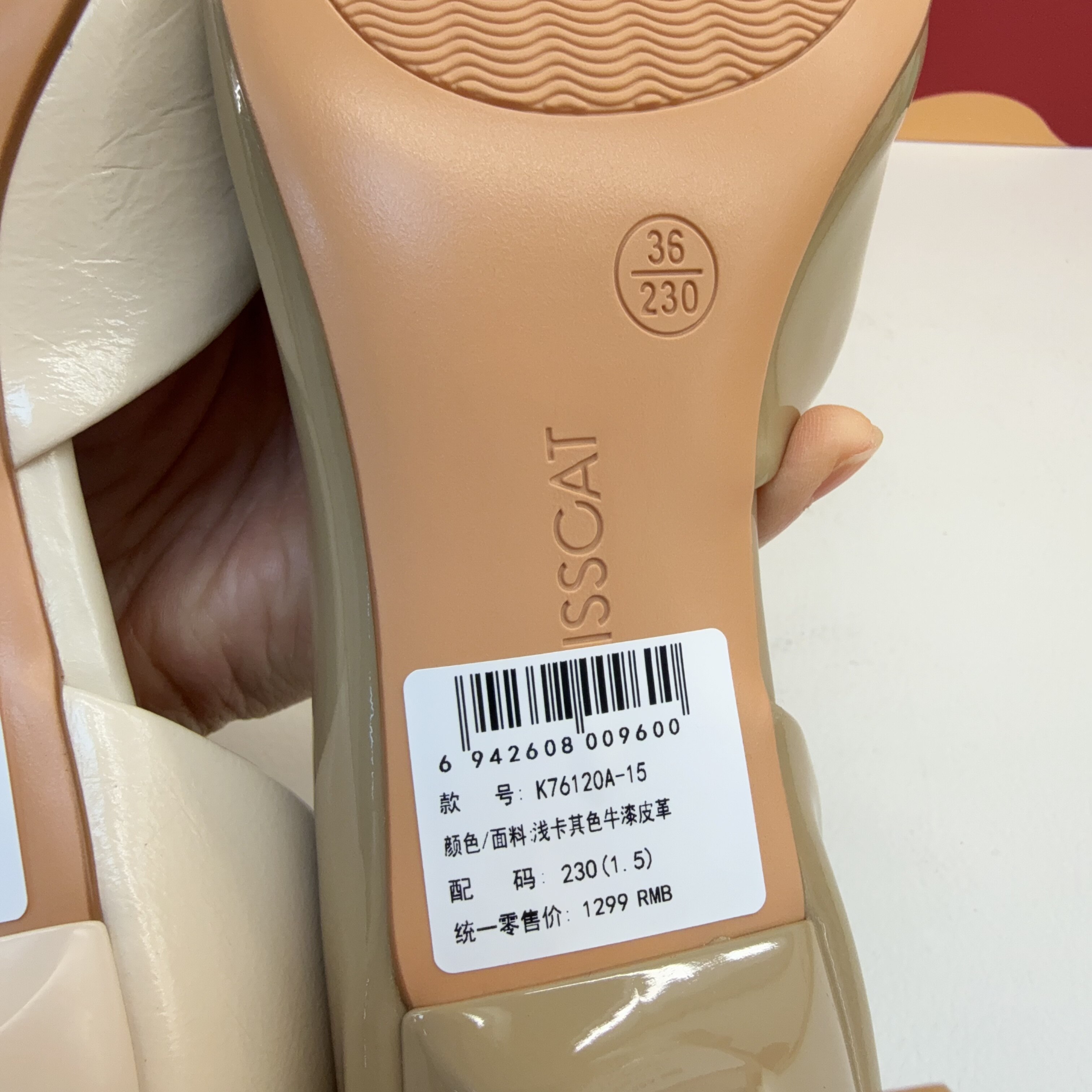 KISSCAT接吻猫2026春猫掌鞋高跟鞋尖头细跟舒适单鞋女K76120A-15