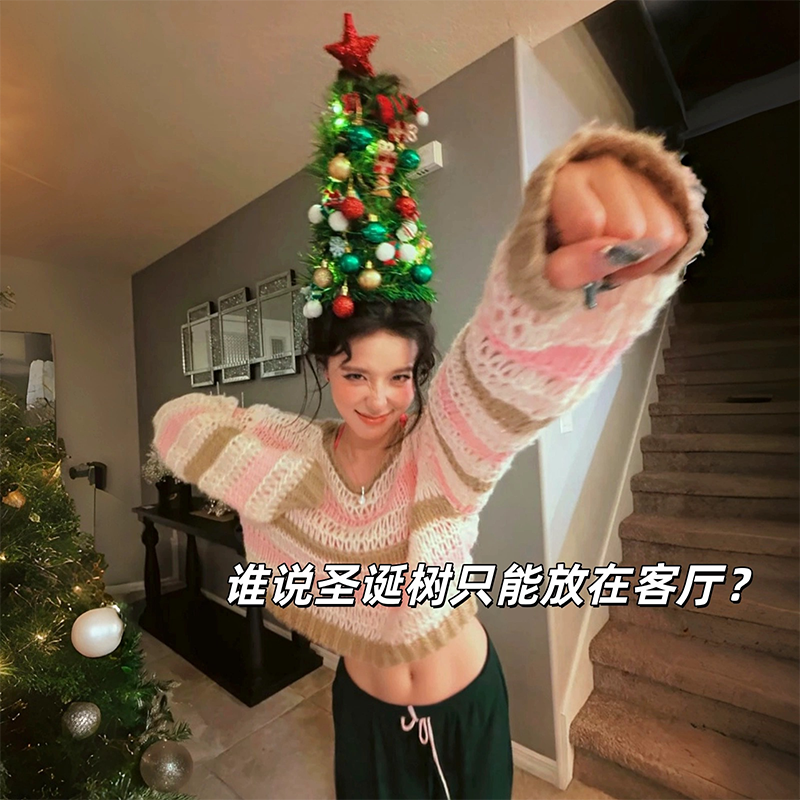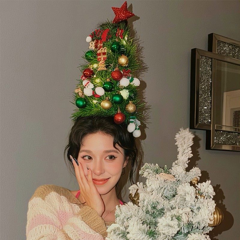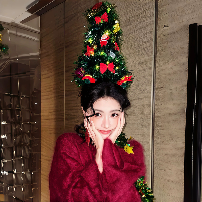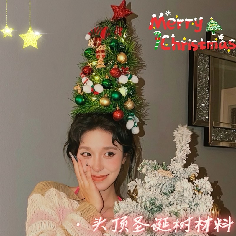 『头顶圣诞树』头饰DIY材料包头发装饰发饰道具彩条配件配饰帽子