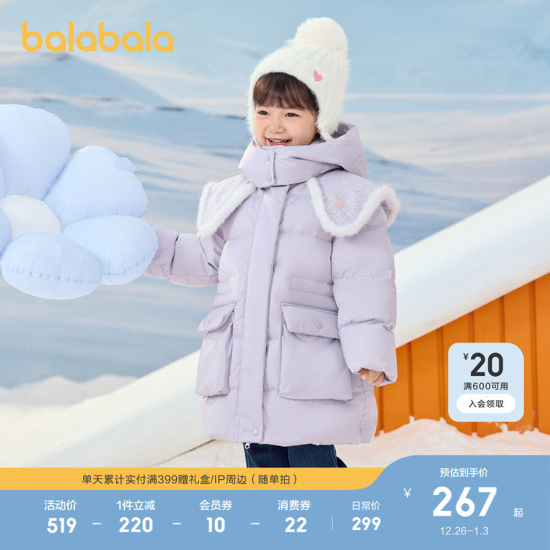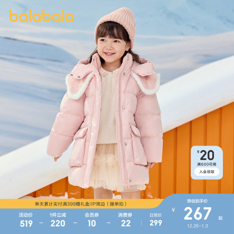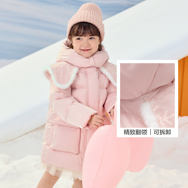 巴拉巴拉童装女童羽绒服连帽冬装外套甜美大翻领时尚洋气保暖上衣