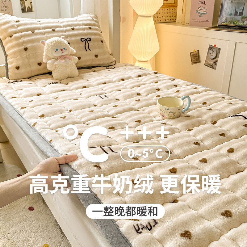 学生宿舍冬季牛奶绒床垫褥子软垫加绒床单加厚单人铺垫被毛毯床褥