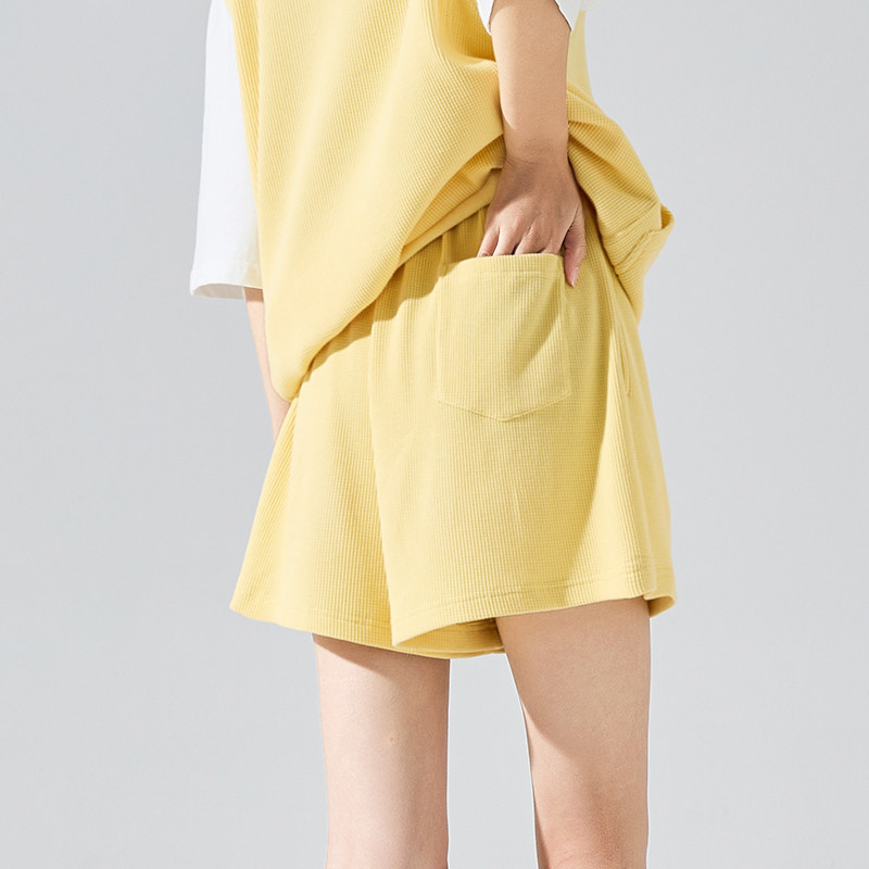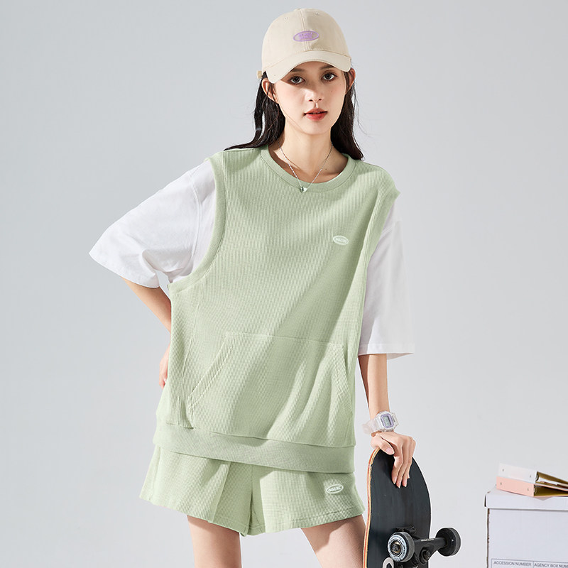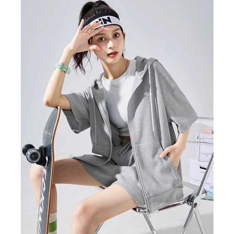 唐狮运动三件套春夏新款休闲时尚华夫格短袖连帽开衫休闲短裤套装