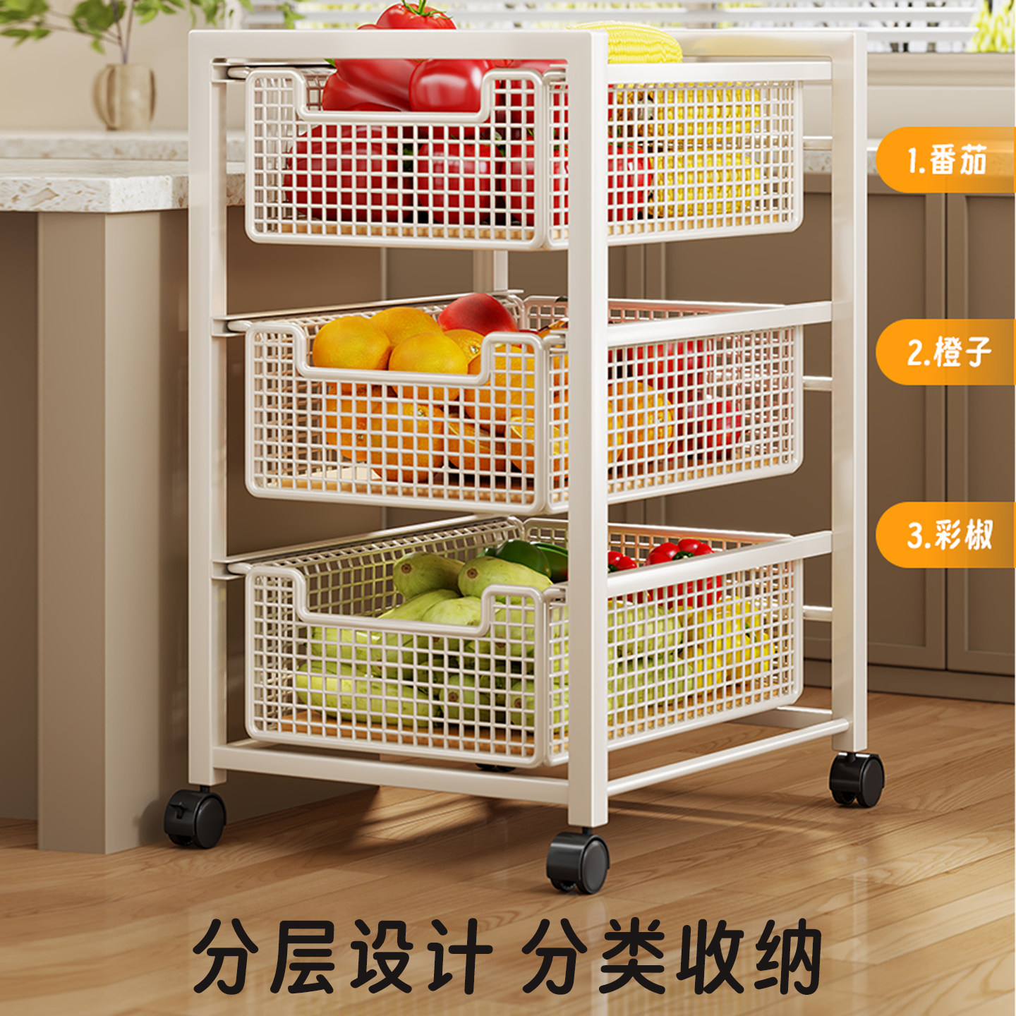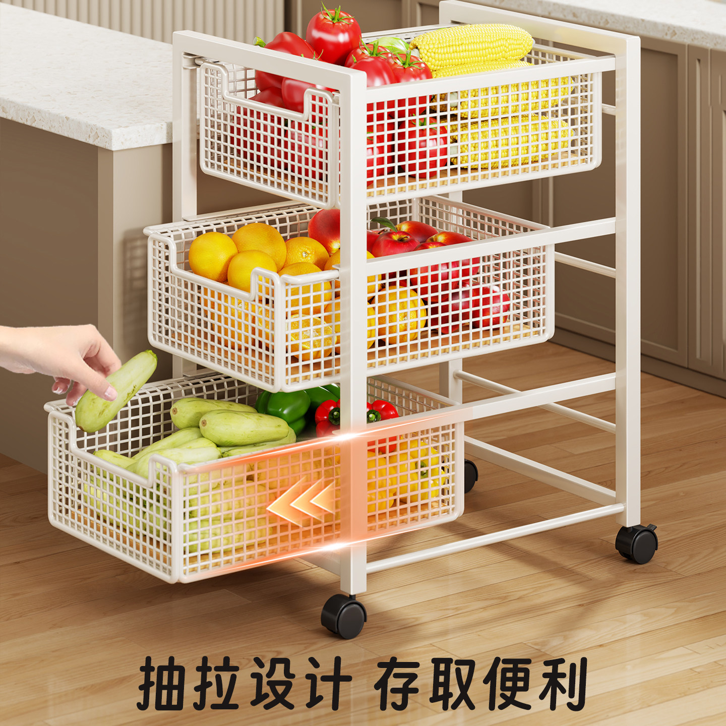 厨房蔬菜水果置物架放菜篮筐抽拉篮客厅落地多层可移动收纳小推车