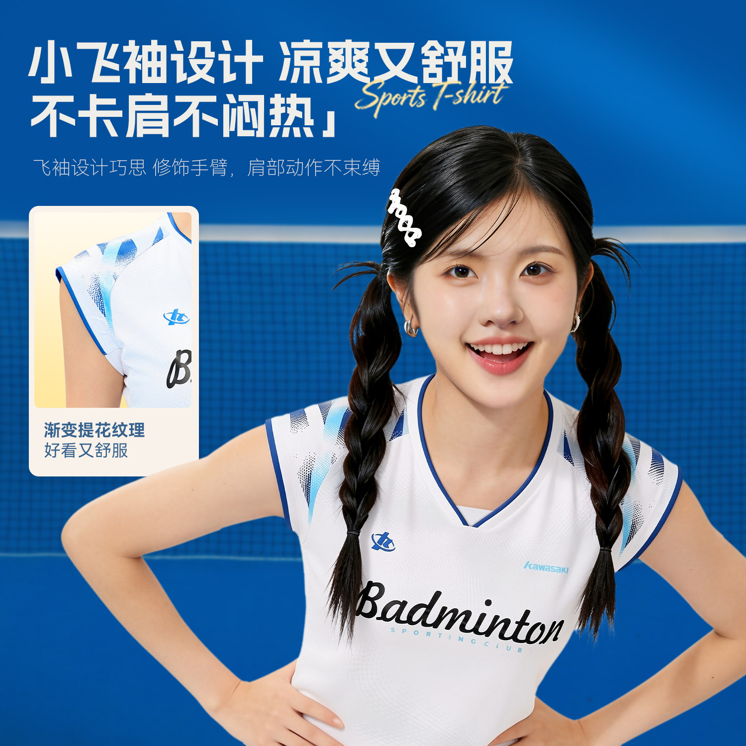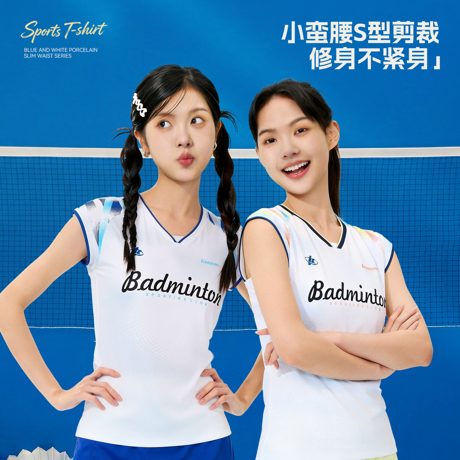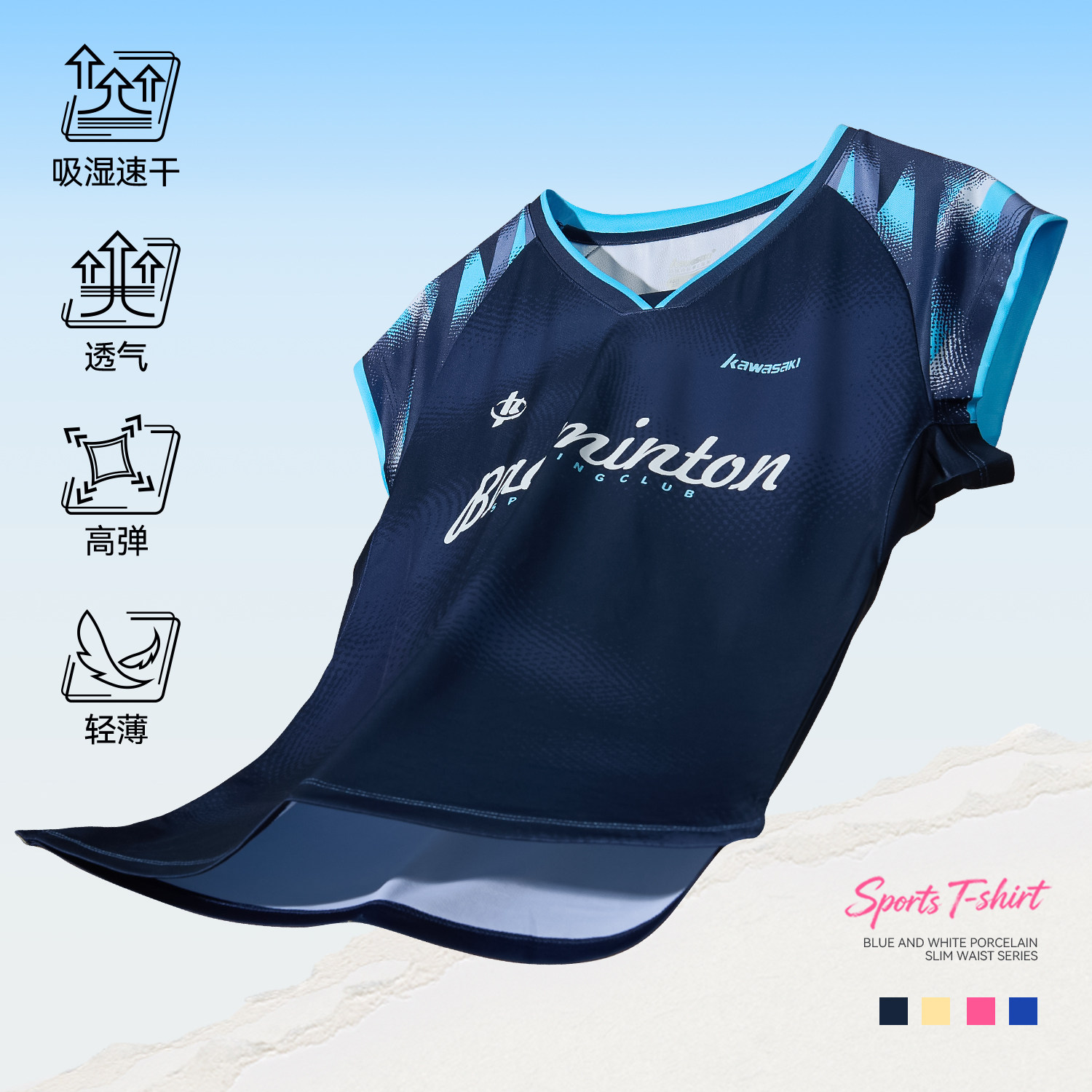 kawasaki川崎26款羽毛球服女运动短袖T恤上衣训练服青花瓷小蛮腰