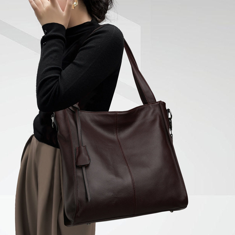 真皮包包女2025新款水桶包大容量通勤包宽肩带单肩斜挎包大气