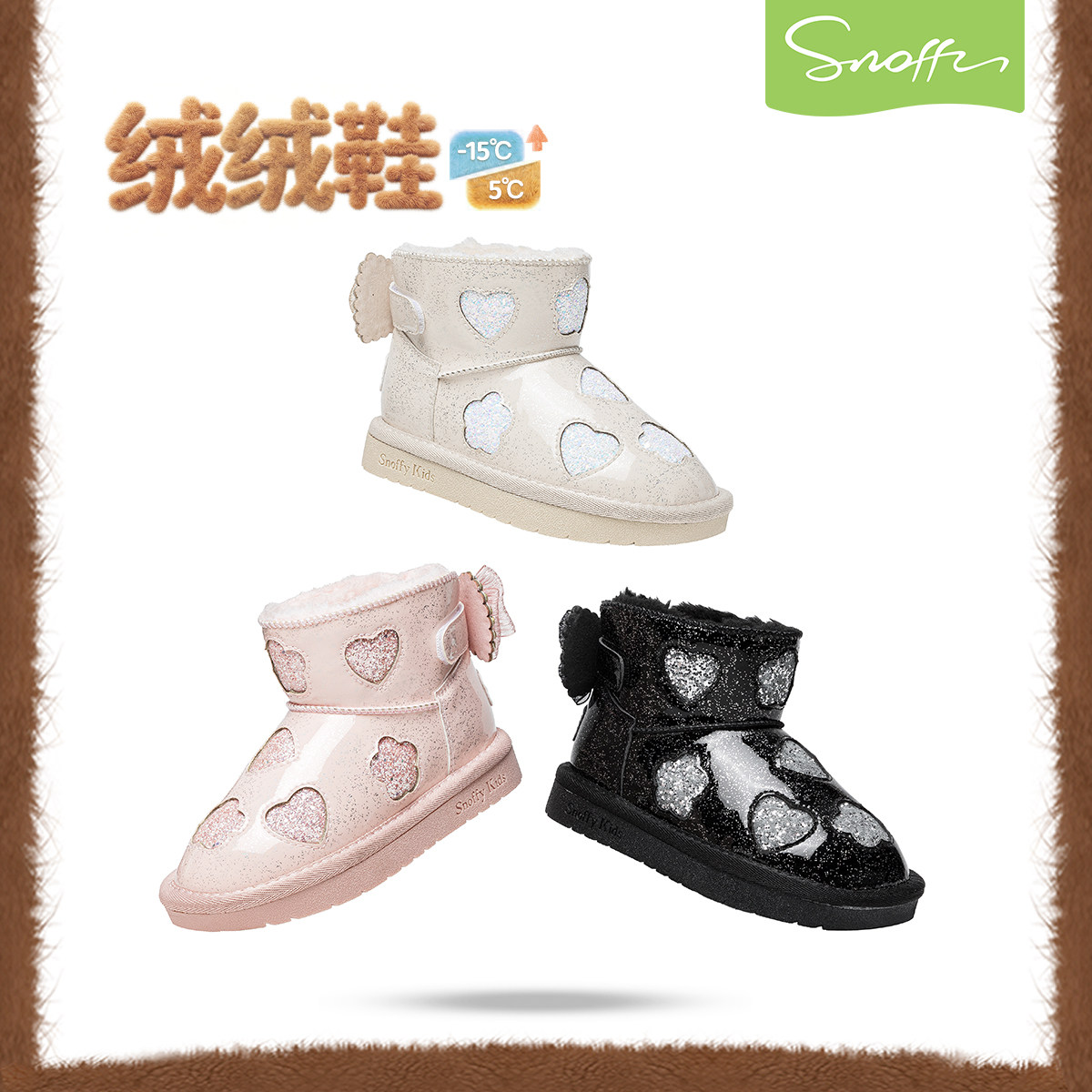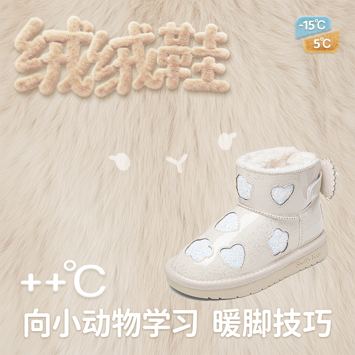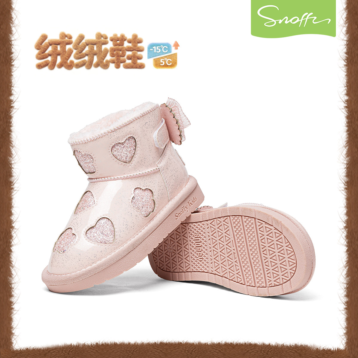 斯纳菲女童雪地靴儿童棉鞋2025冬季新款加绒防泼水宝宝软底短棉靴