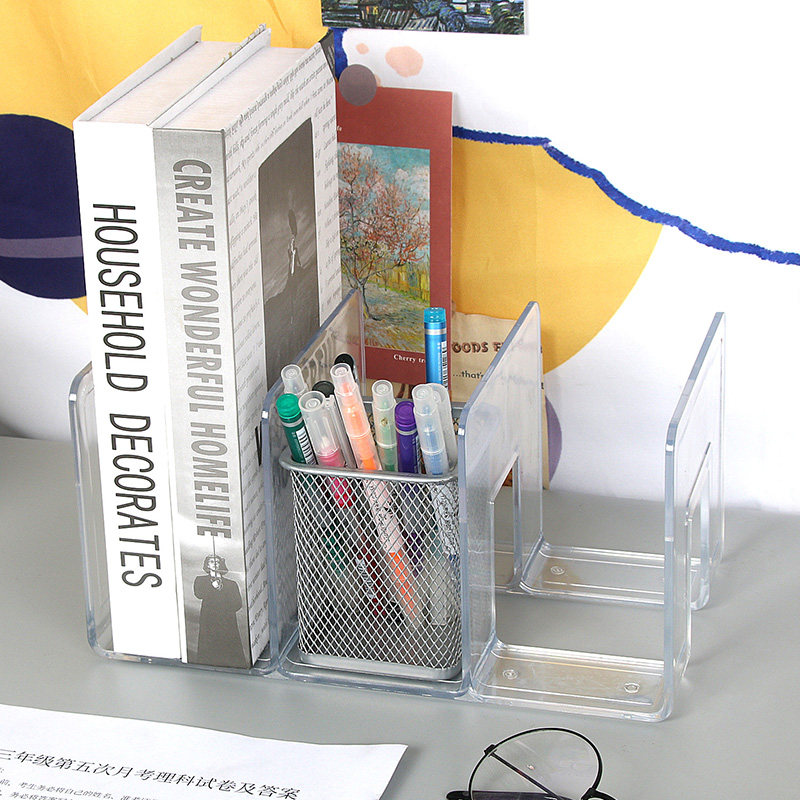 亚克力书立架加厚透明固定书本收纳架防倾倒办公室立式书架学生用置物架书夹书托分隔板办公用品桌上简易办公