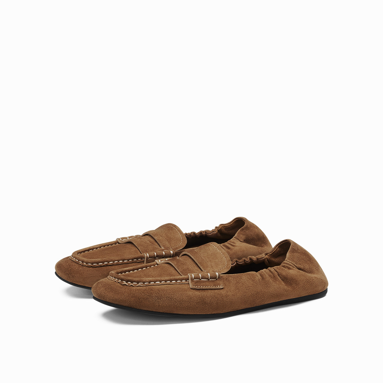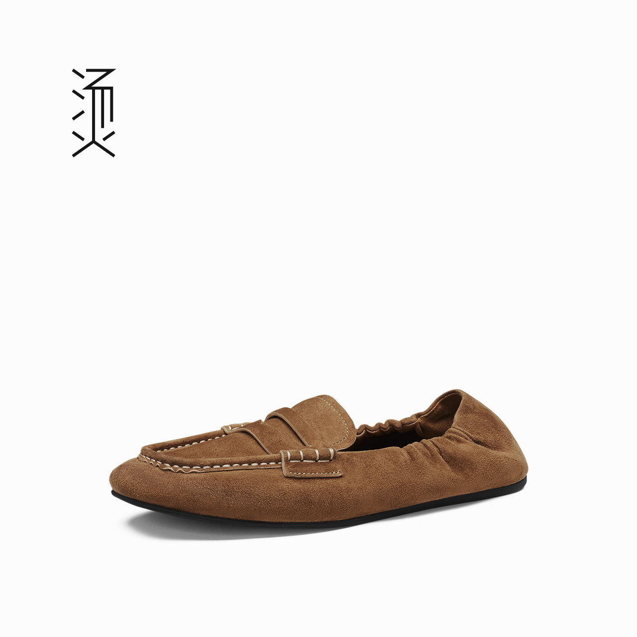 烫社交女鞋棕黄色羊反绒一脚蹬乐福鞋时尚日常百搭休闲懒人豆豆鞋