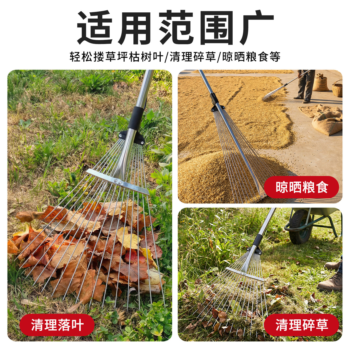 不锈钢耙子搂草扒草铁耙园艺抓草落叶耙子扫树叶草坪扫把农用神器
