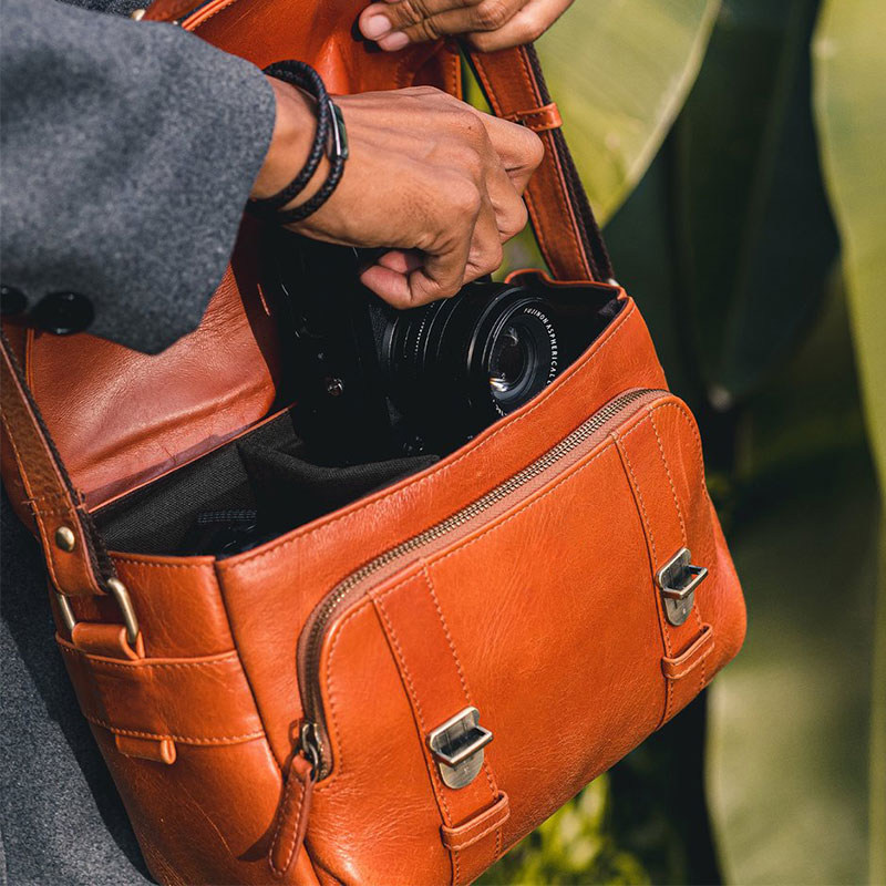 吉卡尼 相机包单反微单单肩斜挎包真皮大容量摄影包数码户外男包