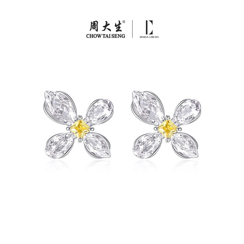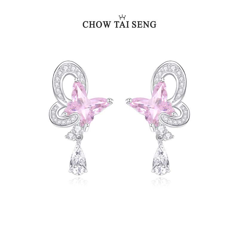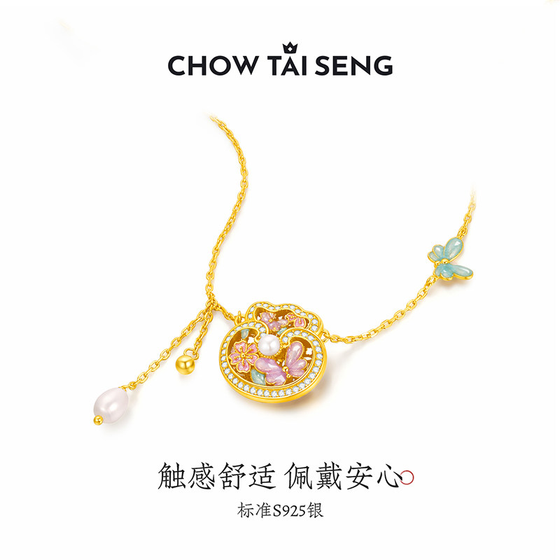 【回头客立减】周大生蝴蝶耳钉小福袋银925淡水珍珠项链轻奢精致