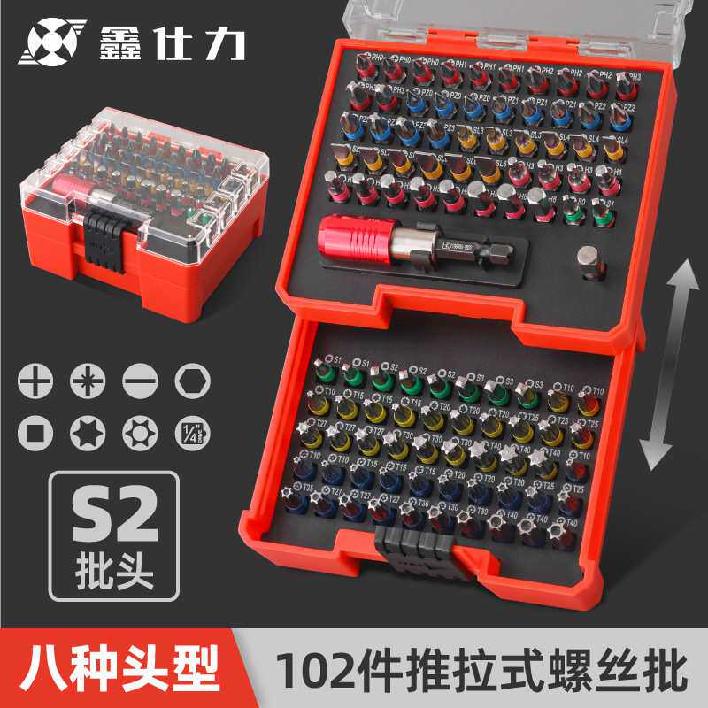 鑫仕力102件批头五金组套工具箱汽车维修螺丝S2电镀扭矩耐用