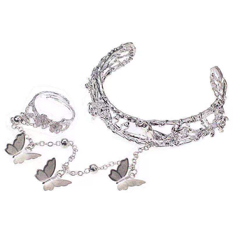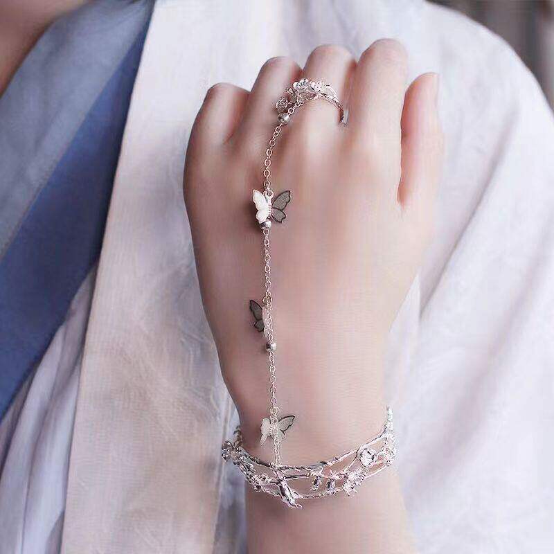 天官赐福花城手链古典中国风蝴蝶镂空玫瑰藤蔓宫铃指环手镯配饰品