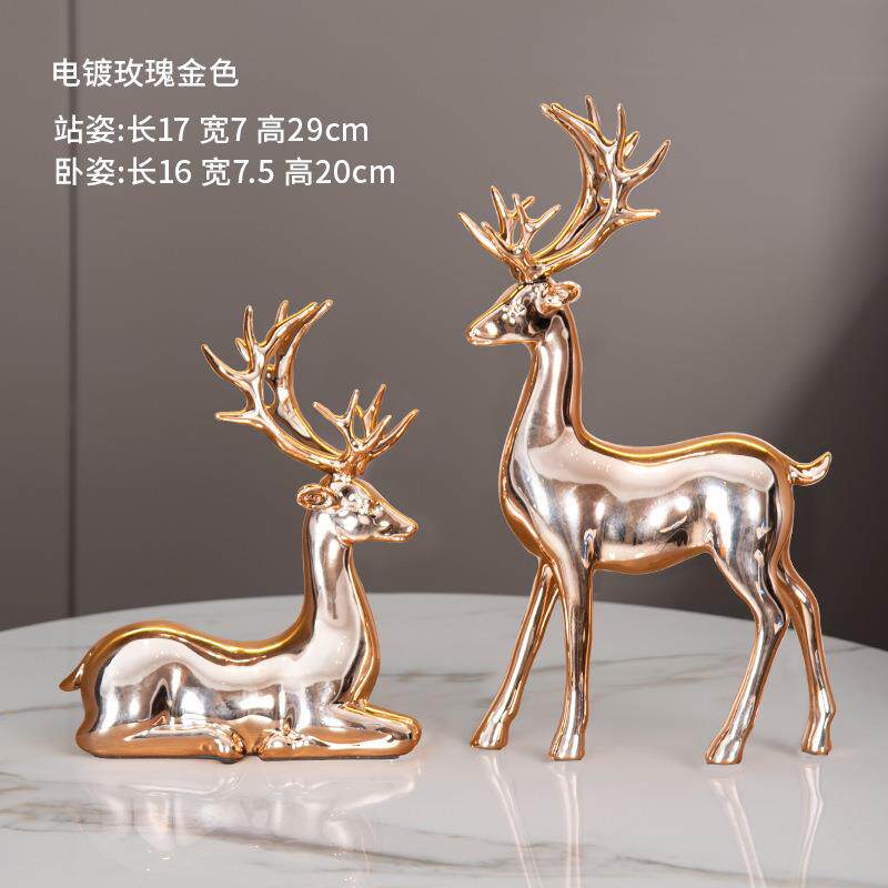 欧式树脂工艺品摆件欧美风格家饰电镀情侣糜鹿客厅电视柜家居摆设