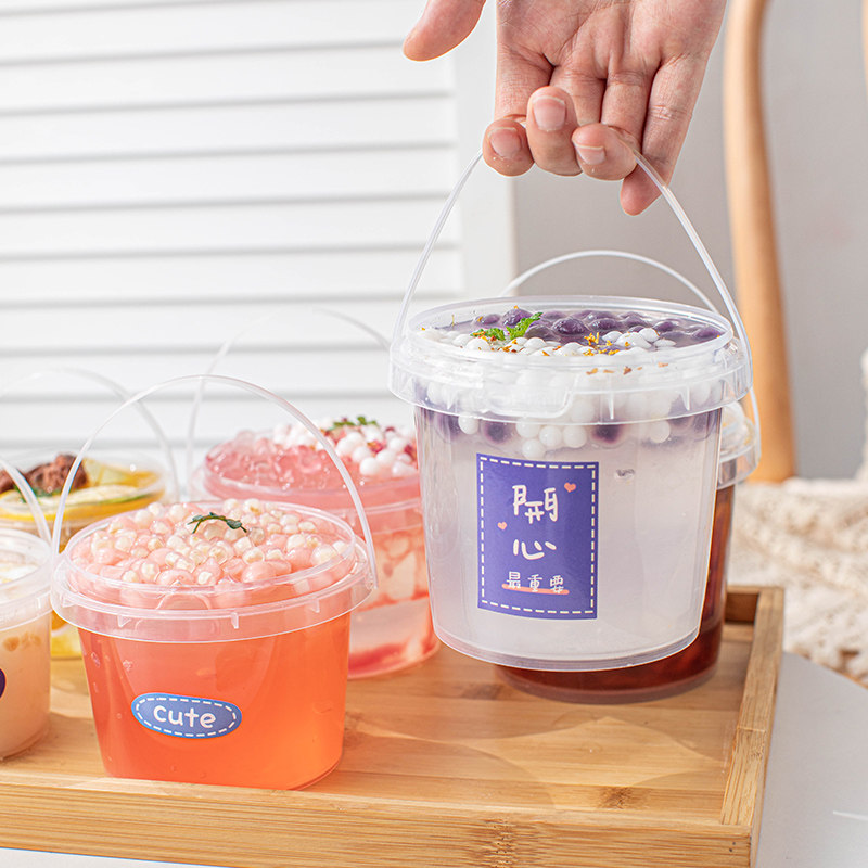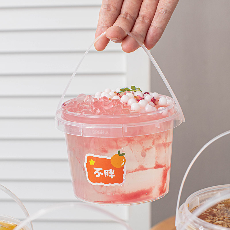 冰粉打包专用盒网红烧仙草杯桶白凉粉水果捞带盖手提芋圆一次性