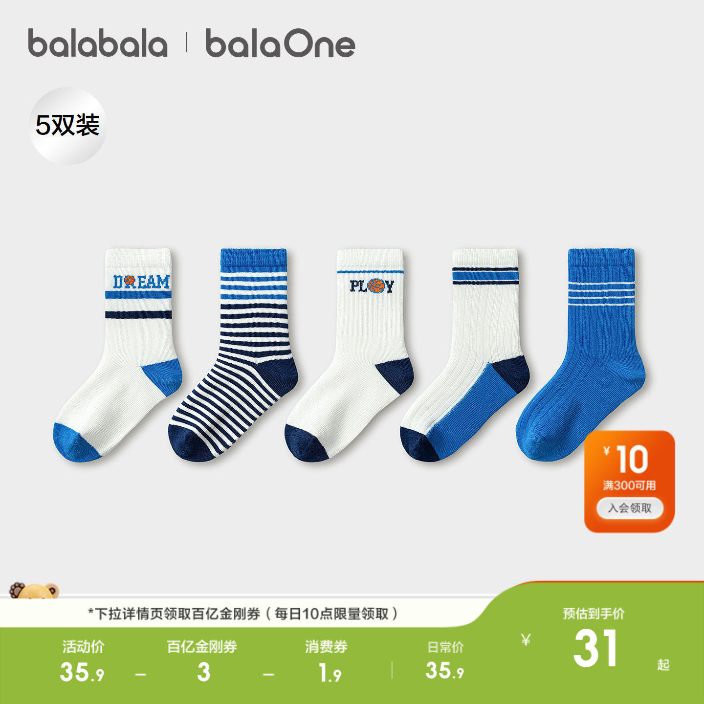 巴拉巴拉儿童袜子春秋男童棉袜中筒袜撞色舒适柔弹亲肤提花五双装