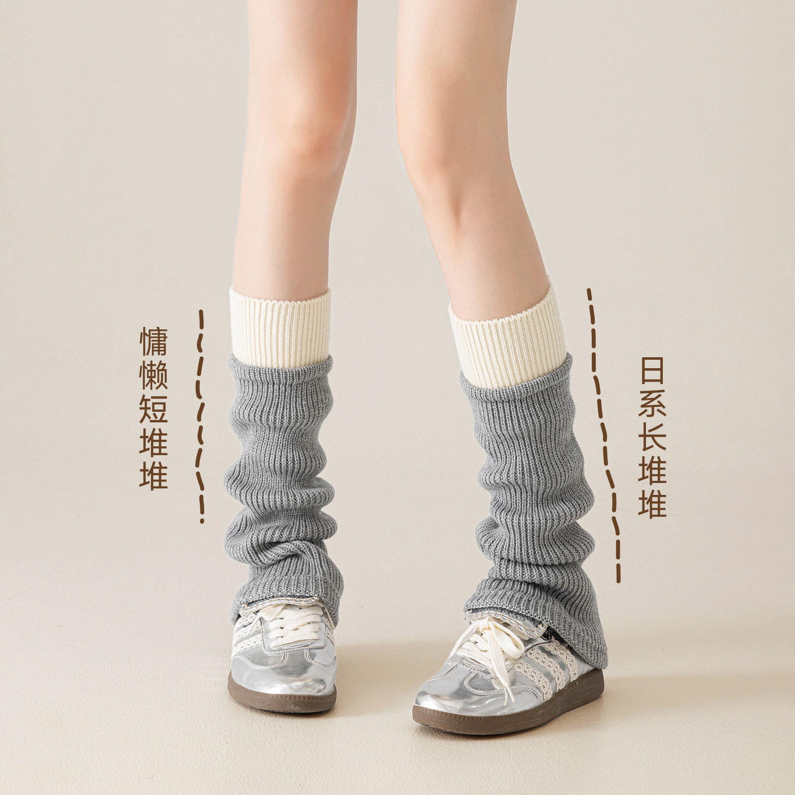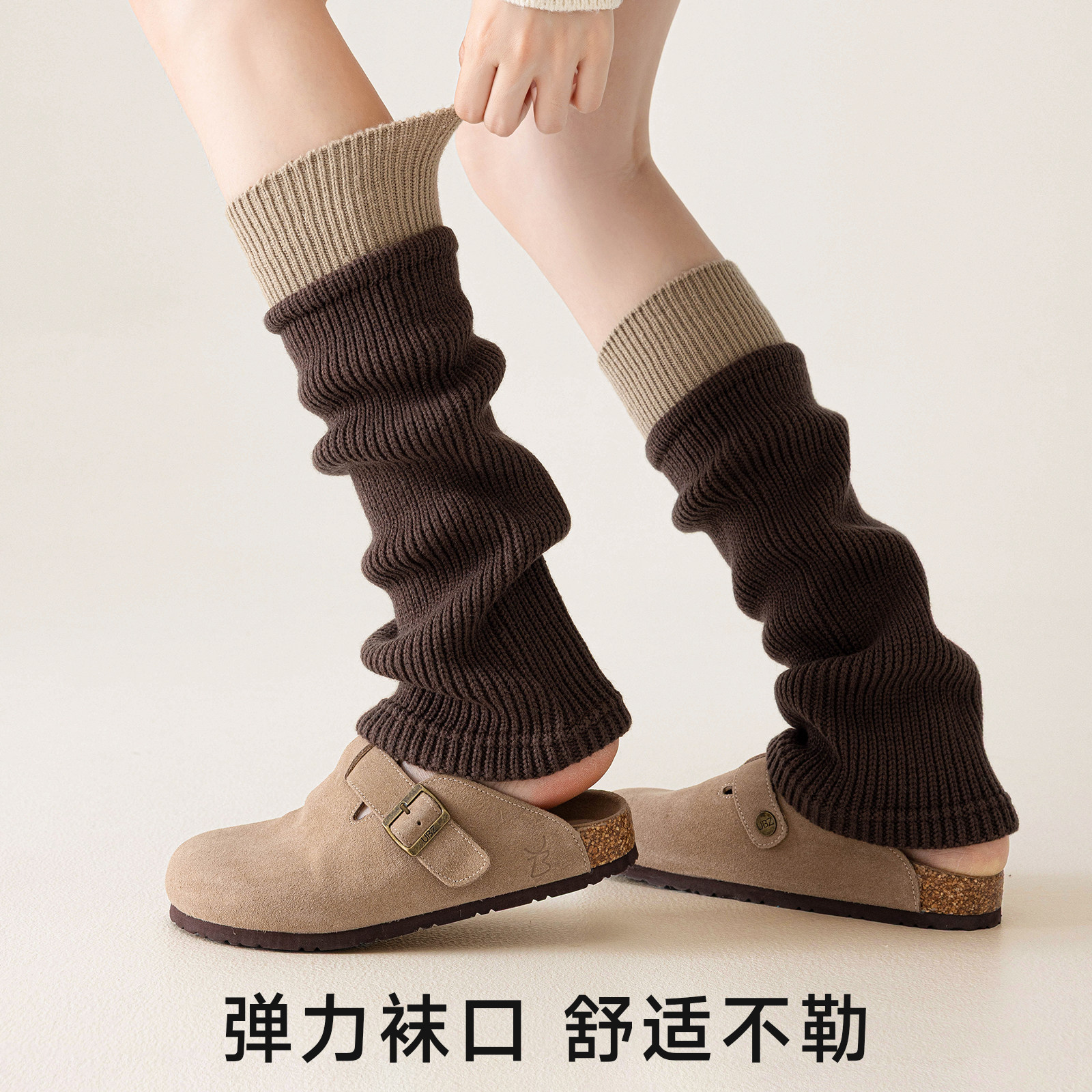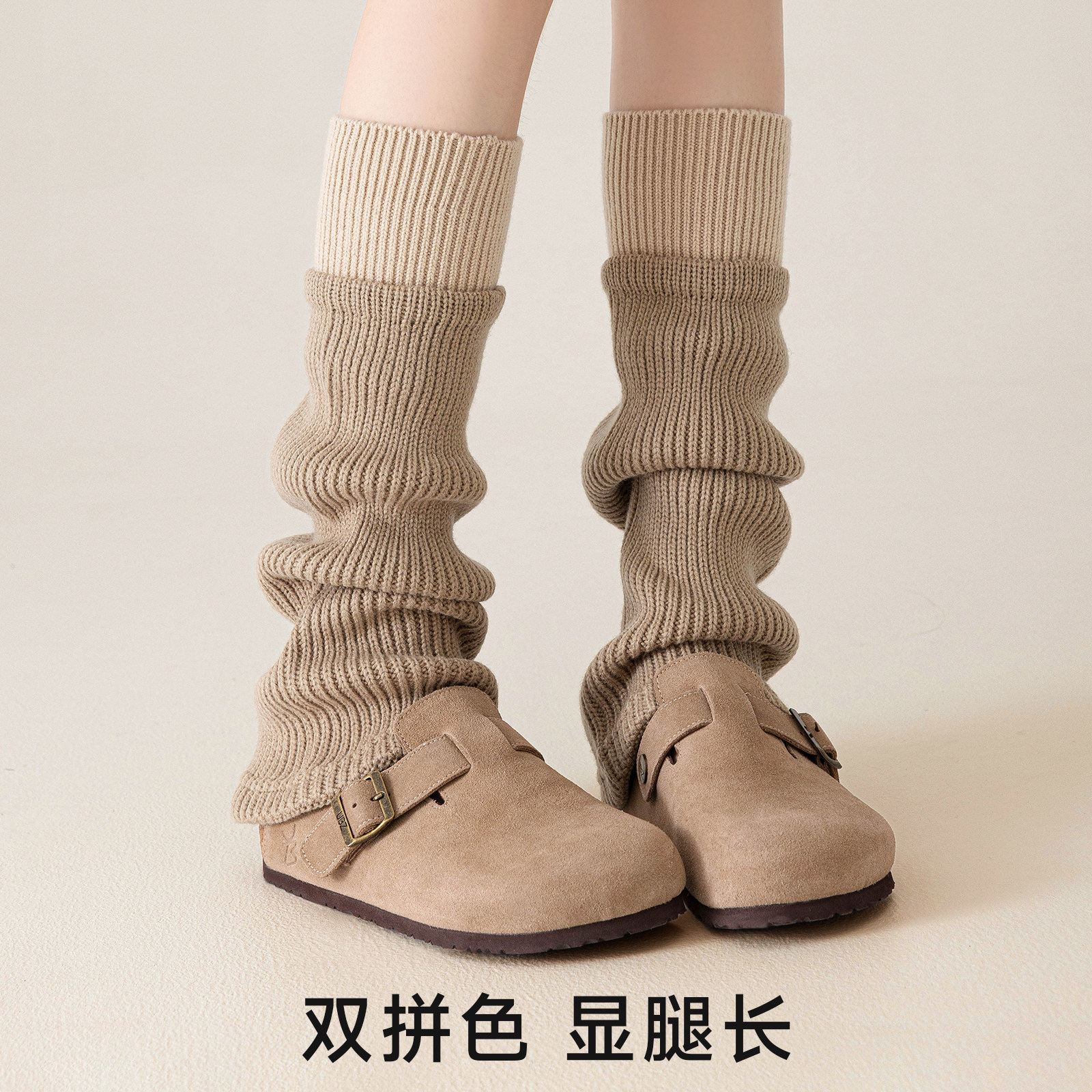 羊毛腿套堆堆袜套女搭配勃肯鞋卡其棕拼色春秋冬季保暖喇叭型袜套