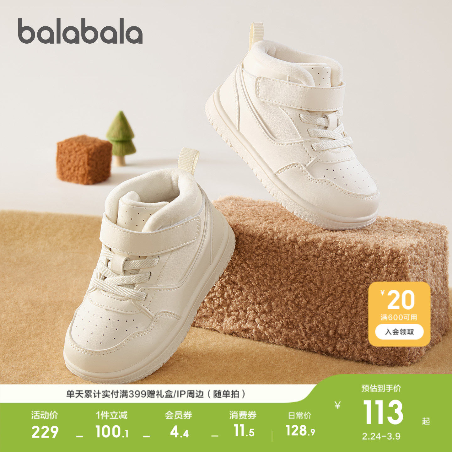 巴拉巴拉童鞋儿童板鞋男女童学步鞋秋冬高帮鞋子加绒防滑婴儿宝宝