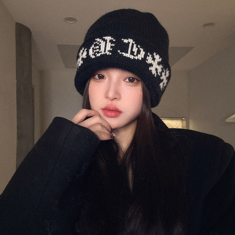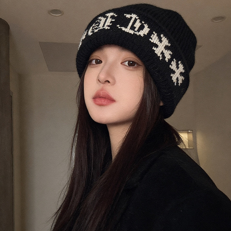 黑色大头围冷帽女2026新款冬加厚保暖针织毛线帽子显脸小堆堆帽