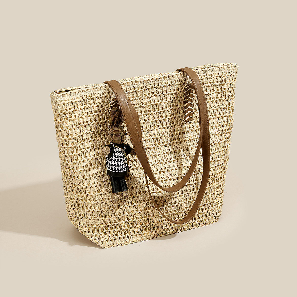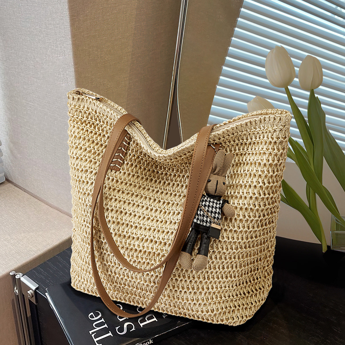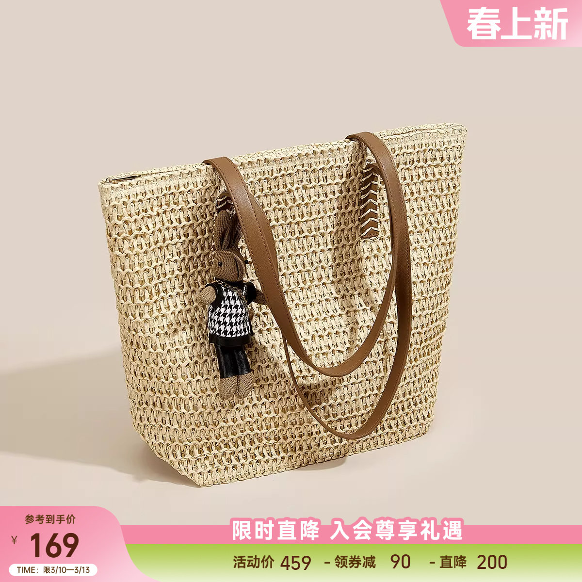 星期六2025新款草编包大容量单肩包时尚编织托特包度假风沙滩包