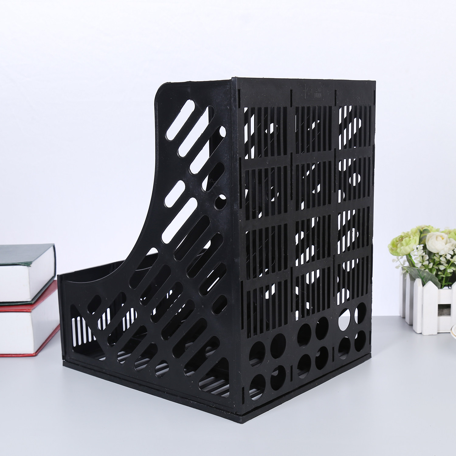 得力文件框文件收纳架加厚文件放置架黑色简易立式书立文件架书架桌面办公文件收纳架文件盒桌上资料架