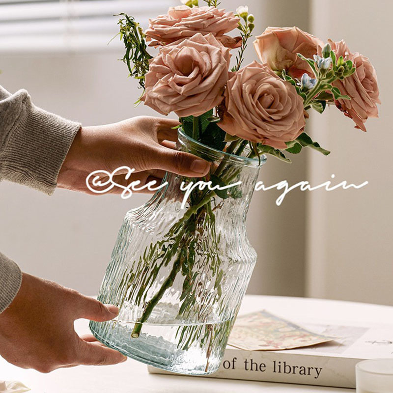 北欧轻奢水晶玻璃花瓶透明客厅酒店插花玫瑰百合鲜花装饰花器摆件